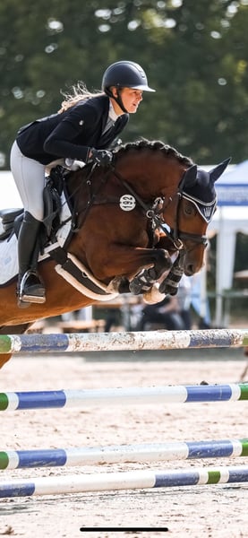 Te koop is de 6-jarige merrie Coer Noblesse (Coer Noble x Las Vegas) met een schofthoogte van 1,46 m. Connie overtuigt door zeer goede basisgangen, een goede rijdbaarheid en een uitstekende sprongtechniek. Ze is een zeer sportief pony dat vooral bij het springen snel en betrouwbaar is. Connie is een uitzonderlijk pony dat al op jonge leeftijd grote successen heeft behaald. Ze werd kampioen pony van de finale kwalificatie van de 5-/6-jarige eventingpony's op het Bundeschampionat 2025 met een eindcijfer van 8,7. Daarnaast heeft ze springpaarden A tegen grote paarden gewonnen en is ze al veilig voorgesteld in springpaarden L. Afgelopen weekend heeft ze nog de springpaarden A gewonnen met een 8,4. In de finale op het Bundeschampionat kon ze helaas niet geplaatst worden omdat de startlijn in het terrein niet werd gepasseerd en ze daarom gediskwalificeerd moest worden. In de dagelijkse omgang is ze een echt hartendief. Ze is braaf, knuffelig en ongecompliceerd. Connie is eraan gewend om door kinderen gereden te worden en blijft daarbij altijd braaf en eerlijk. Ze heeft geen ongewenst gedrag zoals bokken of stijgen en is zeer kindvriendelijk. Ze bevindt zich in het middensegment van de prijscategorie en heeft goede röntgenfoto's van het afgelopen jaar. Bij interesse en verdere vragen horen we graag telefonisch van u op 015732463127.