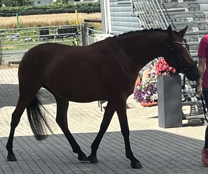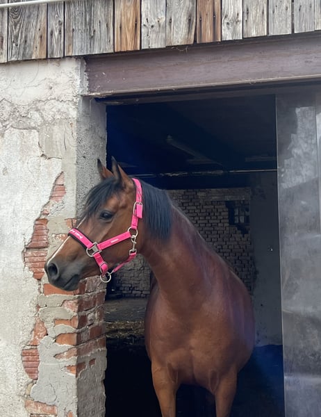 Beautiful 5-year-old German Riding Pony mare seeking her dream home! She is a daughter of Cosmopolitan NRW and full sister to the successful mare Gründeleinshof Cosmolina (twice DSP Free Jump and Free Run champion). Polly has been in our possession since she was 1 year old, allowing her to grow up calmly, and she is now ready to find her lifelong partner! She has given us two wonderful foals and is available for immediate transfer!