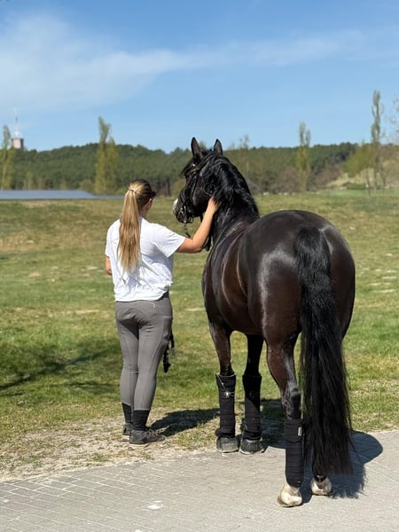 Ta piękna 5-letnia klacz rekreacyjna typu pony jest na sprzedaż. Posiada imponującą, powyżej średniej budowę ciała. Dzięki wyraźnej gotowości do zbioru i odpowiedniemu temperamentowi/talentowi do trudnych lekcji ujeżdżeniowych, jest idealnym partnerem do dużej areny. Obecnie jest w kategorii M dla koni ujeżdżeniowych. Może być również bezpośrednio wykorzystywana jako przyszłe FEI pony. Jak na swój wiek, jest bardzo delikatna w jeździe i bardzo przyjemna w prowadzeniu, także w zakresie kontaktu. Mierzy 148 cm w obwodzie z kopytami. - Przyciągająca uwagę - przekonujące ruchy - Klacz rekreacyjna typu pony, wyprodukowana przez Designed in Black AT - Wielokrotnie zwyciężła w konkursach ujeżdżenia kategorii A i L, startując głównie przeciwko dużym koniom - 148 cm w obwodzie z kopytami - Lekka w jeździe, wygodna w siedzeniu - Dostępne dobre zdjęcia rentgenowskie - wyhodowana w Austrii W razie pytań proszę dzwonić pod numer 017622388605