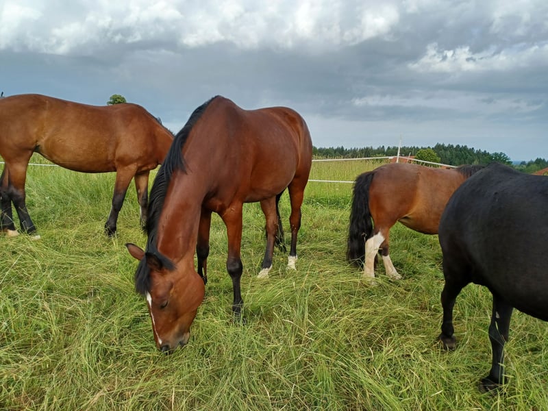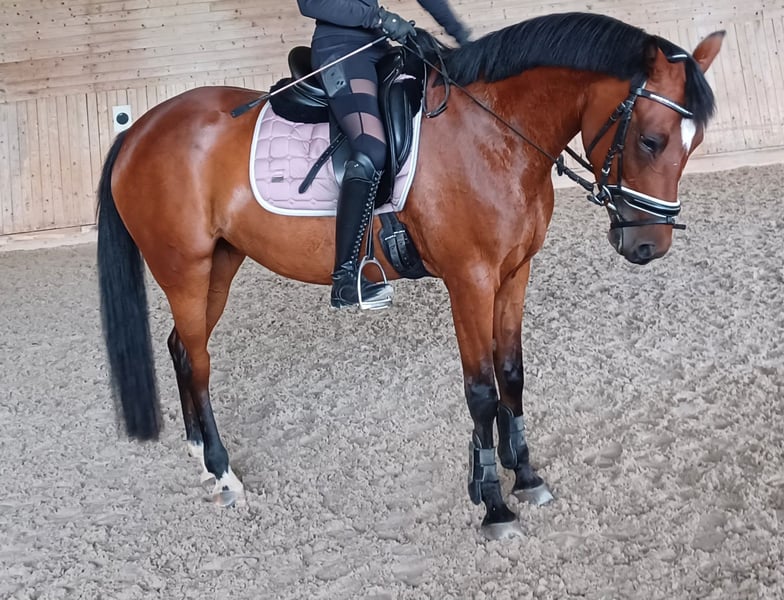 Verkaufe schweren Herzens unsere bildhübsche 6- jährige Reitponystute. Mit ca 150cm Stockmaß leider etwas übers Maß gewachsen. Super lieb im Umgang und beim Reiten. Tolle GGA. Sie ist noch nicht allzu lange unterm Sattel und wurde schonend angeritten. Bei der Arbeit immer sehr motiviert, lernt schnell und hat Power, vor allem das Springen bereitet ihr viel Freude. Sie ist Gelände- und Verkehrssicher, kennt auch andere Tiere und Maschinen und lässt sich problemlos verladen. Momentan steht sie in einer kleinen gemischten Herde im Offenstall. Sie läuft barhuf, wurde natürlich regelmäßig ausgeschnitten, entwurmt, Tetanus geimpft, jährlich die Zähne gemacht und der Physio vorgestellt. Ihr Vater ist der Reitponyhengst FS Pontiac, somit doppelveranlagt und auch für die Zucht interessant. Nur in fördernde Hände abzugeben, da wir ihr zeitlich leider nicht gerecht werden können. Aufgrund ihres Alters und Ausbildungsstandes bitte keine Anfragen von Anfängern, oder als Kinderpony, ebenso ist sie aktuell kein Reitschul-, oder Therapiepony.