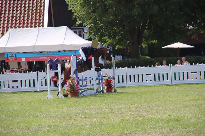 Sprzedajemy naszą 7-letnią klacz niemieckiego kucyka "Vera", ponieważ nasza córka zbyt szybko urosła. Vera jest spokojna w obcowaniu i miała już okazję uczestniczyć w zawodach. Tam wielokrotnie zajmowała miejsca w skokach E. Skakanie sprawia jej wiele radości, a dzięki swoim bardzo dobrym GGA nadaje się również do ujeżdżenia. W terenie zachowuje się wzorowo. Ponieważ Vera została wsiadana późno, chce i powinna jeszcze wiele się nauczyć. Dlatego nie nadaje się jako jedyne kucyka dla dzieci i dla początkujących.