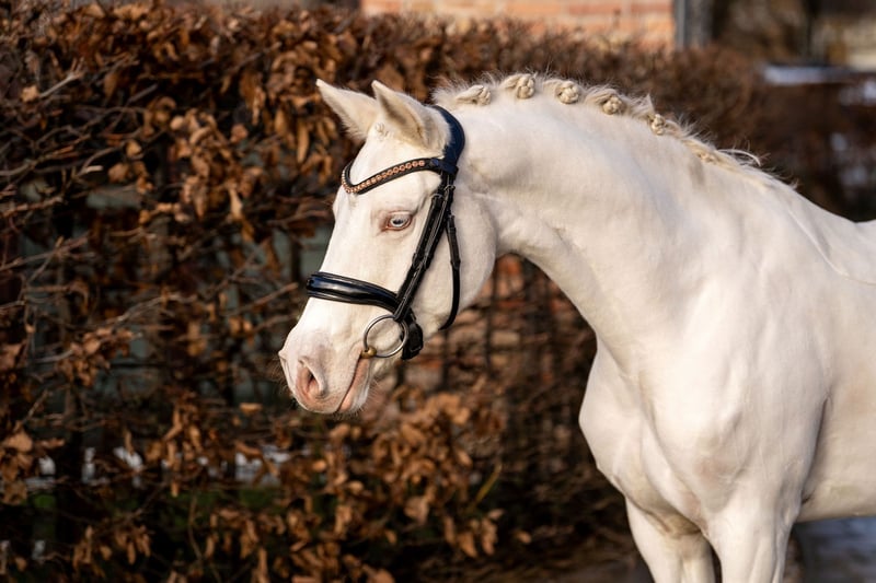 We offer a beautiful riding pony for sale. This elegant Cremello lady was born in 2019 and has already developed into a real eye-catcher. With a height of 147 cm (measured), she is the perfect choice for ambitious riders looking for a reliable partner in dressage sport. Her first-class pedigree and solid training have already allowed her to shine several times in dressage sport. **Features:** - Breed:** German Riding Pony - Sex:** Mare - Year of birth:** 2019 - **Color:** Cremello - Height:** 147 cm - **Discipline:** Dressage This mare not only impresses with her extraordinary color, but also with her friendly nature and willingness to learn. She shows great potential in dressage and is ready to grow with her new owner and become a great FAI pony. If you are looking for a talented and charming pony who will be a pleasure to ride in the arena as well as to handle on a daily basis, then this mare could be just the right choice for you. For more information or to arrange a viewing, please contact us. We look forward to hearing from you!