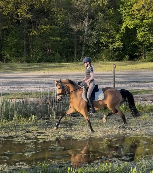 Catinka ist eine liebe und vielseitige Reitpony-Stute. Sie ist hochplatziert bis L Dressur und Springen A**. Sie macht sehr schöne Fliegende Wechseln, und geht sehr einfach in seitwärts Gängen. Unkompliziert zu reiten, und weich im maul. Sie ist freundlich im Umgang, gelassen im Gelände und zeigt eine hohe Lernbereitschaft. Der Buckskin-Farbton verleiht ihr ein besonders edles Erscheinungsbild und macht sie zu einem echten Blickfang. Sie ist gesund, regelmäßig geimpft, und entwumt. Diese Deutsche Reitpony-Stute ist perfekt für ambitionierte Reiter, die eine zuverlässige Partnerin für Dressur, Springen, oder Vielseitigkeit suchen. Bei Interesse freue ich mich auf Ihre Kontaktaufnahme! Videos und weitere Bilder gern auf anfrage.