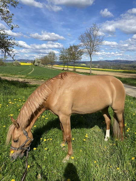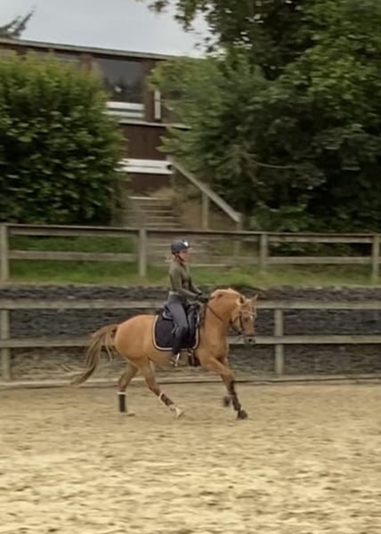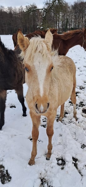 Zum Verkauf steht eine 7-jährige deutsche Reitponystute mit einem Stockmaß von 147 cm. Sie stammt ab von Dimension AT NRW x Dressman und bringt damit eine interessante sportliche Perspektive mit. Da sie auch Staatsprämienstute ist, wäre sie auch für die Zucht sehr interessant. Aufgrund eines längeren Auslandsaufenthaltes hat “Stuti“ im Juni 2025 ein gesundes Fohlen von „Der Goldjunge AT“ bekommen. Nach der Fohlenpause darf sie nun wieder antrainiert werden, was ich leider aufgrund von Studienbeginn und Umzug nicht selbst übernehmen kann. Ich habe sie 4-jährig selbst angeritten und verfügt daher über eine solide Grundausbildung auf sicherem A-Niveau. Natürlich muss dies nach der Pause wieder etwas aufgefrischt werden. Stuti ist sehr lernbereit und zeigt sich im Umgang sehr brav, neugierig und dem Menschen immer zugewandt. Ich hatte selten ein Pony welches so freundlich und aufgeschlossen ist. Unter dem Sattel ist sie ehrlich und angenehm zu reiten. Durch ihr ausgeglichenes Wesen kann ich mir sie auch sehr gut als Kinder- oder Jugendpony mit weiterer Förderung vorstellen. Das Pony ist natürlich Schmiede- und Verladefromm und zeigt keinerlei Unarten. Mit anderen Ponys und Pferden ist sie stets verträglich. Auch war ich mit ihr viel im Gelände unterwegs, wo sie immer brav und unerschrocken war. Auch wenn sie noch nicht auf Turnier vorgestellt wurde, hatten wir sie öfters mit zum Auswärtstraining, wo sie immer total unkompliziert war. Kein Geglotze oder Ähnliches. Ich wünsche mir definitiv einen Langzeitplatz für sie, wo sie nicht als Sportgerät gesehen wird, sondern als Familienmitglied zählt. Außerdem ist es mir wichtig, dass sie in ihrem neuen Zuhause täglichen Weidegang mit anderen Ponys/Pferden genießen darf. Ich könnte sie mir auch gut in einem Offenstall vorstellen, dies ist aber kein Muss. Mit ihrem guten Charakter, der sportlichen Abstammung und dem passenden Stockmaß ist sie ein interessantes Pony für ambitionierte Nachwuchsreiter. Das vorletzte Bild zeigt ihr Fohlen aus 2024 und letzte Bild zeigt sie aktuell. Sie steht momentan in der Nähe von Osnabrück.