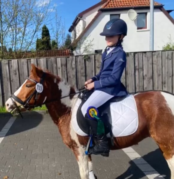 Schweren Herzens müssen wir uns von unserer Stute Muffin trennen. Muffin ist mit viel Go ausgestattet welches sie vor allem im Parcours zeigt, dennoch ist sie handelbar. Sie ist für jeden Spaß zu haben und neben dem springen gefällt ihr ausreiten gehen sehr. Auf dem Turnier ist sie bis E mit steigenden Anforderungen gelaufen, aber auch Führzügel oder Jump and Runs, all dies macht ihr Spaß. Weiteres gerne Privat