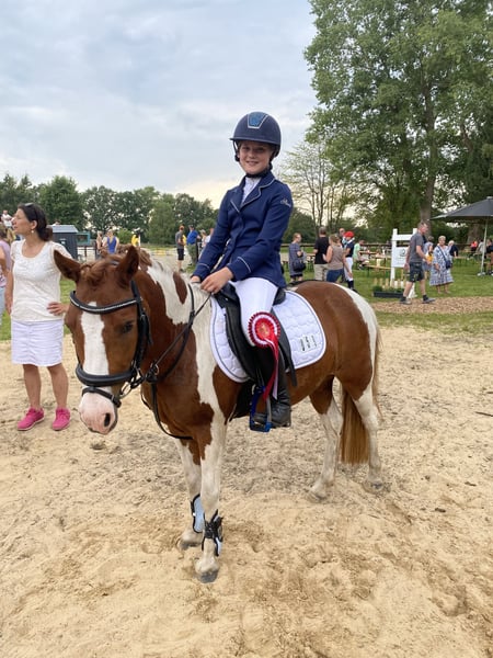 With a heavy heart, we have to part ways with our mare Muffin. Muffin is full of energy, which she particularly demonstrates in the jumping arena, yet she is manageable and easy to handle. She is suitable for anyone looking for fun, and besides jumping, she also enjoys hacking out. She has competed up to E-level at tournaments with increasing difficulty, but she also enjoys lead-rein classes and jump and run events. Further details gladly provided privately.