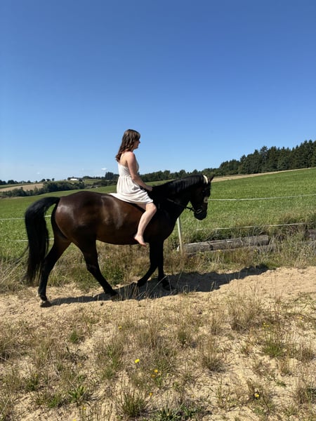 Schweren Herzens verkaufe ich meine 8-jährige Ponystute Samira (ca. 1,45 m), da ich aufgrund meiner aktuellen Pferdekonstellation sowie der laufenden Kosten reduzieren muss. Sie ist ein braves, unerschrockenes Pony und ein echter Allrounder für Freizeit, Gelände und Fahren. ⸻ ✨ Das macht sie besonders: • ein- und zweispännig gefahren – brav, motiviert und zuverlässig • geländesicher, auch alleine • nicht schreckhaft und nervenstark • lässt sich auch problemlos ohne Sattel reiten • kennt viele Umwelteinflüsse (u.a. Dreharbeiten/Musikvideo) • vielseitig einsetzbar und immer für Spaß zu haben ⸻ 🏇 Reiten: Sie ist freizeitmäßig geritten und zeigt sich hier brav und unkompliziert. Am wohlsten fühlt sie sich im Gelände und bei abwechslungsreicher Arbeit, am Platz arbeitet sie mit, ist aber kein klassisches „Sportpony“. ⸻ 🚗 Fahren: Ein echtes Highlight – sie ist ein- und zweispännig gefahren und zeigt sich hier sehr motiviert, zuverlässig und arbeitsfreudig. ⸻ 💛 Charakter: Eine typische Stute mit eigenem Kopf – kann manchmal etwas stur sein, wenn ihr etwas keinen Spaß macht. Sie ist ein absolut verlässlicher Partner.