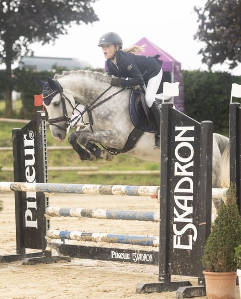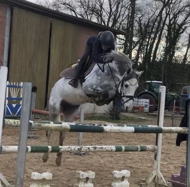 Show Jumping Pony up to 115 cm placed Since my daughter prefers riding larger horses, we are offering, on behalf of the breeder, a charming mare born in 2018. She is registered at 1.46 meters and has been placed in show jumping up to class L against full-sized horses, though her potential is far from exhausted. At four years old, she had her first foal and was then backed and started under saddle. In the arena, she is equipped with go, but she still enjoys being ridden and is therefore not suitable for the "smallest" riders. She is well-behaved in handling and daily work, and she is willing to go alone or in a group into the terrain. She is also familiar with riding without a saddle and similar activities. She comes directly from the breeder but has no registered pedigree. Her sire was a descendant of Colestus and, before being sold to the USA, was placed in show jumping up to class L. The dam is a pony mare, also without pedigree, and has been placed up to A** in jumping competitions, as well as being a series winner in E-level show jumping (she can also be viewed with us). A viewing and trial ride are possible by appointment.