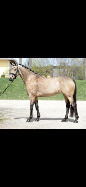 ✨ German Riding Pony in a stunning buckskin color – Mare, 7 years old ✨ A real eye-catcher with an excellent character! With a heavy heart, we are offering our exceptionally beautiful buckskin riding pony mare (7 years old). She impresses not only with her rare color but especially with her fantastic temperament and outstanding riding qualities. 💛 Character & Handling Absolutely lovable and very human-oriented Exemplary in the farrier’s presence Very well-behaved in the terrain – comfortable even for less confident riders Always friendly, honest, and pleasant in daily interactions 🐎 Riding & Training Sensitive and easy to ride, highly responsive to aids, eager to learn Powerful gait with excellent movement – a pony that’s a joy to watch Ideally suited for pony classes, the large arena, or even FEI competitions Lovingly and consistently trained with us Now ready to continue her journey with a new loving owner 🏡 Desired Home: We are looking for a 5-star home where she will be loved, supported, and appreciated. 📞 Contact & Viewing For further information or to arrange a viewing, please contact us by phone – strictly from serious inquiries only. 💶 Note Due to high re-ride tourism and increasingly frequent hesitation tactics, we charge a fee of €30 for trial rides. This helps to avoid unnecessary viewings and ensures that only genuinely interested buyers come. The pony is listed here again because the supposed buyers were definitely interested in purchasing, but until today, they have come up with new excuses...
