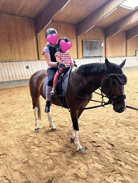 Felia ist eine tunierambintionierte 8-jährige Scheckenstute mit einem perfekten Stockmaß von 1,52m für ein Mutter- Tochter- Gespann. Felia ist sitzbequem, hat ein gutes Go und ist zudem kinderlieb. Wir wünschen uns einen neue liebevollen Besitzer mit Erfahrung, der sie weiterhin fördert. Wir geben sie ausschließlich aus privaten Gründen ab und wünschen uns ein neues liebevolles Zuhause. Aktuell steht Felia in einer Box, hat jedoch auch schon in einer Offenstallhaltung mit einer anderen Stute gelebt. Infos auf einen Blick: Name: Felia 62 Geschlecht: Stute Alter: 8 Jahre (9. Lebensjahr) Stockmaß: 1,52m Farbe: Braun-Schecke Barhufer Felias Sattel sowie Schrank mit Inhalt können außerdem günstig erworben werden. Große AKU vorhanden. Für weitere Fragen stehe ich gerne zur Verfügung.