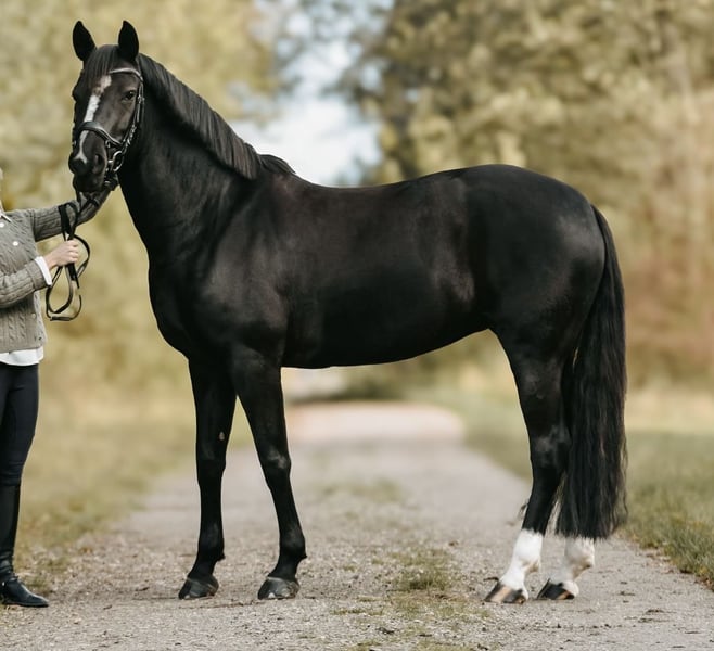 Zum Verkauf steht eine wunderschöne Kleinpferd-Stute (1,53m), die sowohl durch ihre Ausstrahlung als auch durch ihr außergewöhnlich liebes Wesen überzeugt. Donnerlittchen ist im täglichen Umgang sehr brav, absolut unerschrocken und stets zuverlässig – sowohl im Gelände als auch auf dem Turnier. Durch ihr ausgeglichenes Temperament und ihre Rittigkeit ist sie auch für Kinder und Jugendliche bestens geeignet. Ausbildungsstand & Erfolge: ✔ Gute, taktsichere und schwungvolle Grundgangarten ✔ A*-Dressur platziert ✔ E-Dressur gewonnen ✔ Vielversprechendes Potenzial, das noch weiter gefördert werden kann Sie zeigt sich lernwillig, leistungsbereit und macht ihrem Reiter jederzeit Freude. Mit weiterer Förderung ist noch einiges möglich. Aufgrund von Zeitmangel wird sie schweren Herzens abgegeben. Sie wird ausschließlich in allerbeste, fördernde Hände verkauft. Röntgenbilder sind von Oktober 2023 vorhanden und ohne Befund. Sie können bei Interesse an Donner gerne verschickt werden. Bei ernsthaftem Interesse freuen wir uns über eine Anfrage. Bitte nur telefonisch oder über WhatsApp unter 0174/9176972.