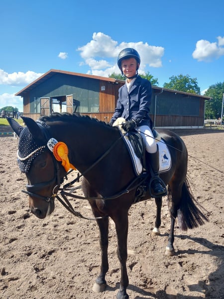 Zum Verkauf steht unsere schöne Pony Stute Magalie. Sie ist ein sehr zuverlässiges Kinder Pony was wirklich alles mit macht. Sie ist erfolgreich bis L Dressur gelaufen und gut ausgebildet. Sie bringt eine tolle Rittigkeit mit und ist super unkompliziert. Sie ist Schmiede & Verladefromm. Sie hat die Staatsprämie und eine gute SLP absolviert. 3 jährig hatte sie bereits ein Fohlen. Da sie ein zungenproblem hat weit unter Wert abzugeben. Bei weiteren Fragen gerne anrufen.
