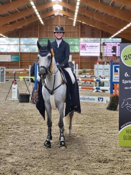 Wir verkaufen schweren Herzens unseren Ponyhengst Rock ’nRoll, da unsere Tochter leider zu groß für Ihn geworden ist. Mit seinem auffälligen Aussehen ist er ein Blickfang auf jeden Turnier. In diesem Jahr konnte er bereits drei M Springen und drei L Springen für sich entscheiden, unter anderem in Leipzig beim Weltcupturnier Ponyturnier in Riesenbeck und in Keppeln sogar gegen Großpferde. Allein im letzten Jahr gewann er über zehn Springen mit etlichen weiteren Plazierungen in L und M Springen. Er ist brav im Umgang. Ideal für einen Reiter der in dem Springsport durchstarten möchte und ein zuverlässiges Pony sucht. Bei Interesse oder für weiter Informationen über Ihn können Sie uns gerne kontaktieren.