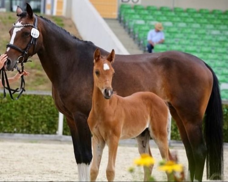 kompaktes Hengstfohlen, sehr zugänglich und interessiert, aus bestem Springblut, Championatsfohlen Vater Mas gue nada- hocherfolgreich im Springsport, doppelt veranlagt, Mutter Verbandprämienstute Guinevere von Der kleine Donnerhall-FS Don`t Worry.