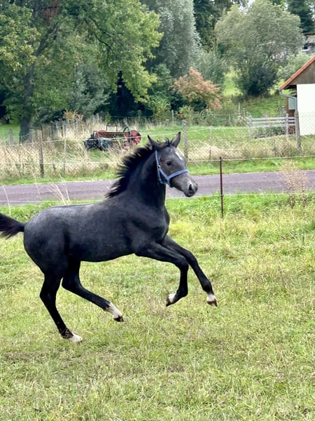 Reitponyhengst mit Spitzenpedigree, Charakter und guten GGA Vater: Der Zauberlehrling Muttervater: Can Dance Dieser elegante und vielversprechende deutsche Reitponyhengst wurde im Jahr 2025 geboren und besticht durch seine beeindruckende Erscheinung und seine Umgänglichkeit . Er bringt alles mit, worauf eine spätere Ausbildung gut aufbauen kann. (Gesundheit, Charakter, sehr gute GGA und Leistungsblut!) Seine Mutter war 2019 auf dem Endring der Elitestutenschau zu den Landtagen Nord in Wüsting. Sein Vater ist einer der angesagtesten Hengste der Gegenwart. Nach dem Reservesieg der Wesrfälischen Körung 2023 folgte im letzten Jahr der Titel des Westfalenchampions. Typ, Interieur und Bewgungsqualität sind von absoluter Ausnahmequaöität und von einem der bedeutendsten Stutenstämme Westfalens abgesichert. Mit der überragenden Endnote von 8,61 gewinnt der Zauberlehrling nach dem Westfalenchampionat auch seine HLP in Münster Handorf. Die Bundeschampionatstitel der engsten Verwandten sprechen Bände. Weitere Vertreter dieser Familie sind in den Dressurklassen M und S siegreich. Dutton beherrscht das Fohlen 1x1 perfekt und lässt sich auch von vorbeifahrenden Autos auf der Straße nicht aus der Ruhe bringen. Mit diesem Jährling investieren Sie in die Zukunft Der Hengst vereint die typischen Reitpony-Qualitäten mit einem angenehmen Charakter und viel Potenzial für die Zukunft. Seine elegante Erscheinung und sein ausgeglichenes Wesen machen ihn zu einem idealen Partner für ambitionierte Reiter, die Wert auf Qualität und Leistungsbereitschaft Bei Interesse oder für weitere Informationen freuen wir uns auf Ihre Kontaktaufnahme. Überzeugen Sie sich vor Ort von der Qualität des Ponys!