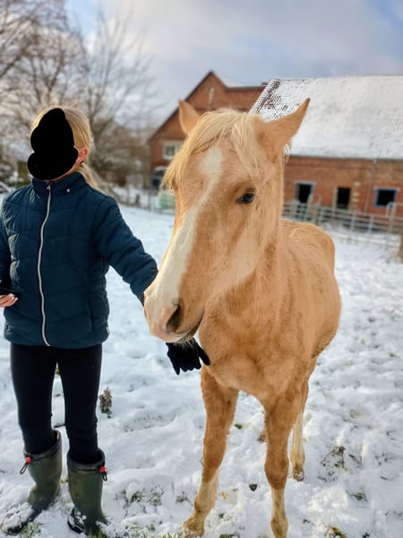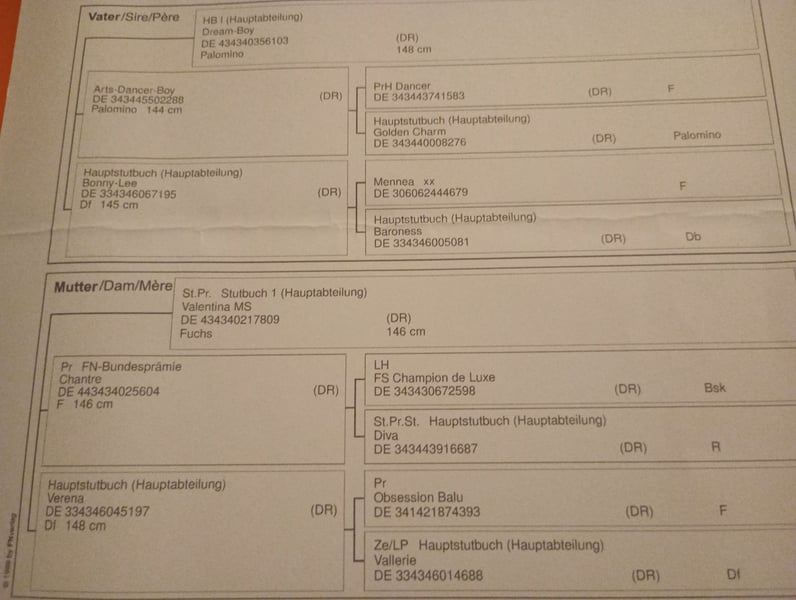 Hallo zusammen, aufgrund von Bestandsreduzierung steht dieser bildhübsche junge Deutsche Reitpony Hengst zum Verkauf. Name: Golden Dream Rasse: Deutsches Reitpony Farbe: Palomino mit vier weißen Beinen Größe: ca. 1,36 ist allerdings noch voll im Wachstum Geboren: 10.08.2024 Ausbildungsstand: Roh (noch nicht geritten) Unser "Paulchen" hat volle Papiere/ Abstammung + Eigentumsurkunde. Interessant als zukünftiges Kinderpony/ Turnier oder auch Fahren. Keine Krankheiten/ Lahmheiten/ Allergien bekannt Bei ernsthaftem Interesse gerne melden. Liebe Grüße