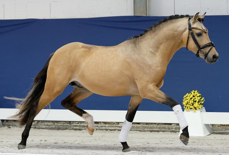 For sale is a stunning 2.5-year-old pony stallion. This typey young stallion has everything a good stallion needs: quality, appearance, pedigree, and most importantly, an excellent temperament! He is a son of the renowned sire Golden Dream and clearly exhibits pony type and masculinity. He has already been introduced to lunging and free jumping. Gipsy King boasts three excellent basic gaits and a good jumping manner. His full brother has already been licensed and is successfully competing in dressage abroad. A very promising candidate for sport and breeding. A recent veterinary examination is available and can be sent upon request, including the inspection report. For more information, please contact us at: 015204105724