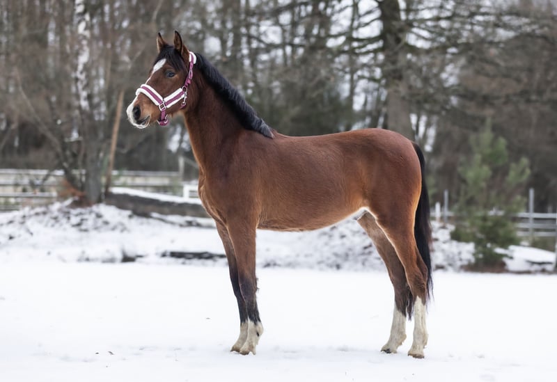Ausnahme Nachwuchspony Unser, am 15.06.2024 geborene, „Deniro“ ist nicht nur ein absoluter, im Hengsttyp stehender, langbeiniger, Eyecatcher, sondern auch ein Ausnahme Nachwuchspony. Aktuell misst er ca 1,45cm. Er stammt ab von D-GOLD AT NRW, der bereits mehrfach mit Höchstnoten von bis zu 10,0 überzeugen konnte, aus einer STEENDIEKS MISS TRACY Mutter, eine typvolle, bewegungsstarke Verbandsprämien Stute vom Elitehengst FS Chambertin/Eiluns Monopoly. Schon jetzt zeigt er sich Gang gewaltig mit einem großrahmigen, fleißigen Schritt, einem schwingenden und elastischen Trab und einem energischen und schwungvollen Galopp. Dabei ist vor allem seine enorme Schulterfreiheit und sein von naturaus fleißiges Hinterbein zu betonen. Ganz von alleine tritt er bereits jetzt kraftvoll unter den Schwerpunkt. Dieses Talent wurde auch bereits auf der Fohlenprämierung in Wickrath erkannt. Dort wurde er mit der Silberprämie ausgezeichnet und von der Zuchtleitung wie folgt beschrieben: „Dieses Silberprämienfohlen vereint Vermögen und Leistungsbereitschaft. Neben seinem korrekten Fundament besticht er durch seinen unerschütterlichen, schreitenden Schritt, seine schwungvolle, elastische und große Trabmechanik und der wunderbar unter den Körper gesprungene Galopp und lässt keine Wünsche für spätere sportliche Aufgaben offen.“ Doch er überzeugt nicht nur durch sein außergewöhnliches Potential, sondern auch durch seinen liebherzigen und süßen Charakter. Er ist sehr menschenbezogen, aufgeschlossen, neugierig und wissbegierig. Deniro liebt es gekuschelt zu werden und schafft es, einem jeden Tag ein Lächeln ins Gesicht zu zaubern. Wer auf der Suche nach einem absoluten Goldschatz ist, der enormes Potential, das sich durch seine elastischen und schwungvollen Grundgangarten auszeichnet, und einen einzigartig liebevollen Charakter vereint, der wird mit DENIRO seinen neuen Traumpartner finden! Er ist kerngesund, ist weder Ekzemer noch hat er sonstige Verhaltensauffälligkeiten. Bei Interesse schreiben sie eine Wathsapp an 0176-82205841