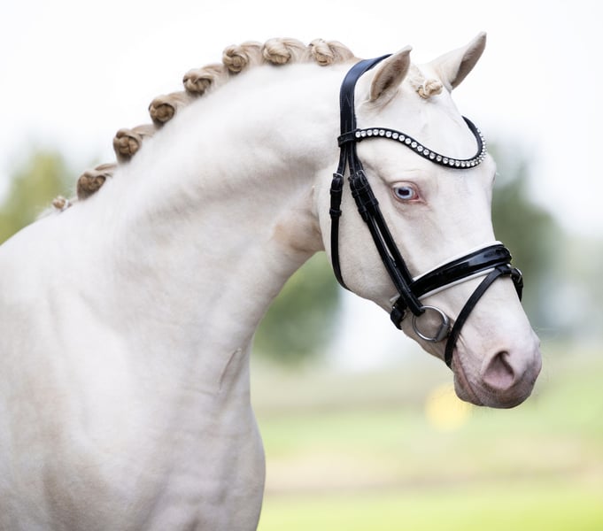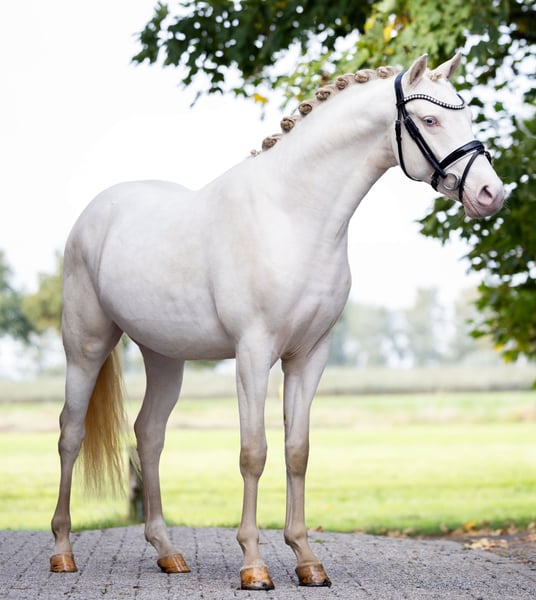 ***** N I C H T N U R F A R B L I C H E I N E Y E C A T C H E R **** Deutsches Reitpony / Nachwuchs Dressurpony in der Farbe Perlino (doppelt aufgehellter Brauner) aus einem Top Stamm, mit allerbester Absstammung, Spitzen Charakter, Championatsqualität und entsprechender Perspektive aus Züchterhand zu verkaufen oder zu verleasen. Er war als Fohlen Championatssieger mit einer Endnote von 9,03 (über 90%) und ist Halbbruder zu einem hoch erfolgreichen jungen Championatspony, welches als gekörter Hengst von einem 12jährigen Mädchen geritten wird. Seine Schwester gewann ihre Stutenleistungsprüfung mit Höchstnoten. Eine weitere Schwester wurde Siegerstute und die jüngste Schwester Fohlenchampionesse mit einer Endnote über 9! Deren Mutter ist Bezirkssiegerstute, Eliteschausiegerin, Reservesiegerstute des Deutschen Stutenchampionates und sporterfolgreich. Zudem ist ihr Vollbruder gekört sowie hocherfolgreich gegen Warmblüter im Grand Prix Sport (inklusive Weltcup!). Mutterstamm des dreifachen Pony Dressur Europameisters Nasdaq, seines gekörten Vollbruders PAV Nachtschwärmer: Vize Bundeschampion der fünfjährigen Dressurponys 2021 und Bundeschampion der sechsjährigen Dressurponys 2022 sowie -S- Dressur erfolgreich, des in Dressur & Springen zum Bundeschampionat qualifizierten, gekörten Hengstleistungsprüfungssiegers Global Champion WE (-L- Springen siegreich und M-Dressur erfolgreich gegen Großpferde), des Körungssiegers Dark Dornik, der gekörten Vollbrüder Veltin (S-Dressur erfolgreich), Vic (M*-Dressur erfolgreich), Valerossi (Norwegischer Siegerhengst sowie Dressur Pony Europameisterschaft) und Valido’s Highlight (2. Reservesieger Westfalen und S**-Dressur). Deren Vollschwester Vallery (Ur-Großmutter des hier annoncierten Ponys) war 1994 Reservesiegerstute im Rheinland, gewann 1996 Bronze im Bundeschampionat der fünfjährigen Dressurponys, platzierte sich 2000 bei der DJM, war erfolgreich in FEI/bis M-Dressuren und ist Mutter des Hessischen Körungsieger & und zweifachen Reitpony und Dressurpony Bundeschampion Clooney (v. Cyrill WE) usw. Ein Top Ausbildungspony, was altersentsprechend noch nicht geritten ist! Kann in seinem jetzigen Ausbildungsstall auf Wunsch (zum Anreiten etc) verbleiben...