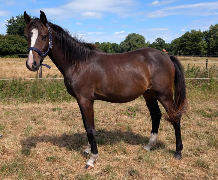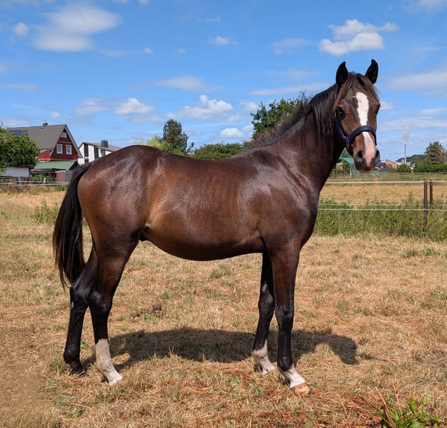 Dieser wunderschöne, wirklich super brave und Bewegungsstarke Reitponyhengst sucht schweren Herzens ein Zuhause. Er ist im März 2024 geboren und vom Typ sowie vom Charakter wirklich ein Traumpony. Ähnelt er einem Hund, als einem Pony. Er hat volle Papiere und ist als Fohlen prämiert worden. Sein Vater ist der wunderschöne Hengst Nablissimo und sein Opa New Classico. Beide lassen ebenfalls keine Wünsche offen (Bilder im Anhang). Seine Mutter ist sowohl vom Wesen als auch im ganzen Charakter eine wundervolle Stute gewesen. Er ist Herdenverträglich, Schmiede und verladefromm, Straßensicher , kinderlieb, kennt Hunde und ist Halfterführig. Kennt das ganze Fohlen ABC! Er wird im Maß bleibenund ist jetzt schon eine totale Schmusebacke. Geimpft Entwurmt Dem Hufschmied vorgestellt Wer ein Pony mit späteren Kör Aussichten sucht oder ein Partner mit dem er alles erreichen kann, ob im Dressursport oder im Vielseitigkeitsbereich hat hier ein Pony für alle Disziplinen. Telefonisch gerne unter 0176 80026980 melden.