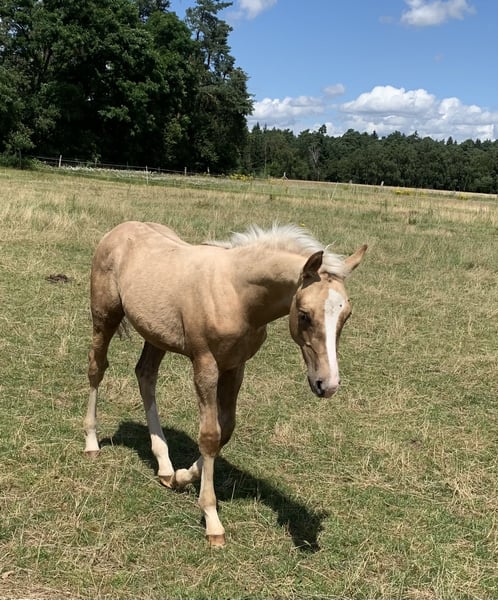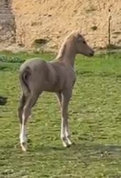 Annonce de vente : poney de selle allemand, étalon, palomino Nous proposons à la vente un magnifique étalon poney de selle allemand. Né en 2024, ce magnifique Palomino séduit par son apparence impressionnante et son caractère amical. Avec une taille prévue de 148 cm, il est un partenaire idéal aussi bien pour les jeunes que pour les adultes de petite taille. Sa robe dorée, typique des palomino, attire tous les regards et lui permet de se distinguer sur tous les terrains d'équitation. Cet étalon est un véritable trésor qui, par son caractère attachant et son potentiel, ravira certainement son nouveau propriétaire. Si vous êtes intéressé par cet étalon poney allemand de rêve, n'hésitez pas à nous contacter. Nous nous réjouissons de votre demande.