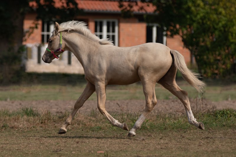 1. discesa: Dazione: Fateemah (Fatima x Coolmen) (MM x MV) Sire: Nanchos Golden Star (FS Golden Highlight x Heidbergs Nancho Nova) (VM x VV) 2° colore: Isabelle con occhio scuro 3. altezza attuale: circa 135 cm 3. nato nel marzo 2024, stallone, deposto a novembre 4. descrizione: "Fatimas Rising Star" è un castrone da monta di tipo espressivo. È adatto ai bambini, facile da gestire, addestrato alla cavezza e ben socializzato in un piccolo allevamento. Ha una conformazione armoniosa, movimenti promettenti in tutte le andature di base e in generale è un giovane brillante.