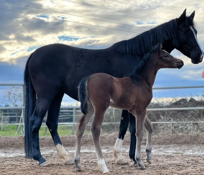 Zum Verkauf steht „Cosmo's Brilliant“, ein im Jahr 2023 geborener deutscher Reitponyhengst, der nicht nur durch seine Abstammung, sondern auch durch sein bereits jetzt erstklassiges Interieur überzeugt. Cosmo ist ein Sohn des Multichampions Cosmopolitan NRW, gezogen aus einer Mutter von Dimension AT. Diese Anpaarung verspricht höchste Rittigkeit, überdurchschnittliche Grundgangarten und beste Perspektiven für das große Viereck oder den gehobenen Fahrsport. Trotz seines jungen Alters ist Cosmo bereits bestens auf sein späteres Leben als Sportpartner vorbereitet: Er ist bereits anlongiert, kennt die Doppellonge sowie den Langzügel. Sattel und Geschirr sind ihm vertraut; er befindet sich aktuell ganz am Anfang seiner Ausbildung als Fahrpony. Er ist ein absoluter Musterschüler – brav, ruhig und unerschrocken. Er lässt sich bereits von Kindern führen, putzen und geht entspannt spazieren. Er ist artgerecht im Herdenverband mit Gleichaltrigen aufgewachsen und zeigt sich neugierig und dem Menschen zugewandt. Cosmo wird regelmäßig dem Hufschmied vorgestellt und entwurmt. Er ist kerngesund und wird nur aufgrund gesundheitlicher Einschränkungen des Besitzers in fördernde Hände abgegeben. Jahrgang: 2023 (Hengst) Stockmaß: aktuell ca. 142 cm Farbe: Brauner Preis: 8.500 € Da Cosmo noch ein Youngster ist, ist ein Probereiten natürlich nicht möglich. Wir laden Sie jedoch herzlich zu einem persönlichen Kennenlernen ein, um sich von seinem Charme und seiner Gelassenheit vor Ort zu überzeugen.