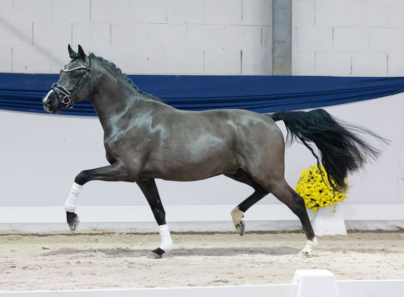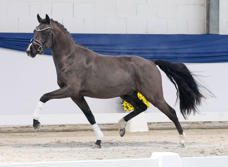 Our collection features carefully selected young horses suitable for all disciplines: training, breeding, and children's ponies. You can view the full collection here: https://ponyforum.auction Want to be famous? Then go for it—Gonna be Famous makes it possible! This energetic young stallion is an eye-catching prospect, not only because of his striking smoky black coat. Gonna be Famous combines a stunning pony look with strong type qualities and a lively, expressive movement. He has impulsion and a natural self-carriage that typically takes other ponies a long time to develop. Attentive and eager to work, he looks forward to new challenges every day—boredom is not an option, as this young horse genuinely enjoys engaging with his handlers and learning new things. He has not yet been presented publicly, so perhaps his new owner might consider starting him on the licensing path. In terms of quality, appearance, health, and genetics, he is certainly a suitable candidate! His sire, Gipfelstürmer, won the German Federal Championships four times, and his grandsire, Going East, has achieved success up to the European level.