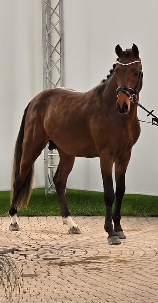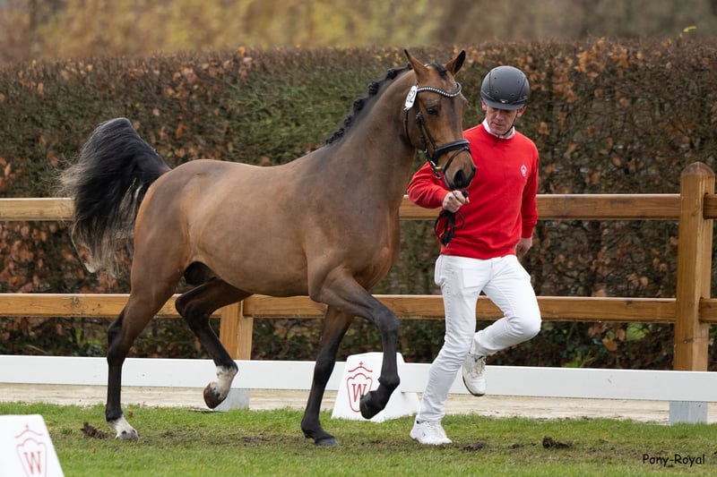 German Riding Pony stallion – Promising young prospect for dressage We are offering a promising German Riding Pony stallion born in 2023. With his attractive bay coat and a height of 146 cm, he combines typical riding pony qualities with an elegant appearance. The young stallion is already well-handled and demonstrates promising talent for dressage. His open-minded nature, quality movement, and pleasant temperament make him an ideal partner for ambitious young riders seeking a well-developed and promising young stallion. His character, willingness to learn, and solid basic training suggest a successful future in dressage. The stallion is healthy, regularly checked by the vet, and ready for further training. He is blacksmith and loading friendly. On request, he can be delivered promptly. For further information or if interested, please feel free to contact me. A personal meeting is always possible.