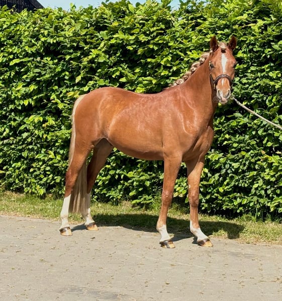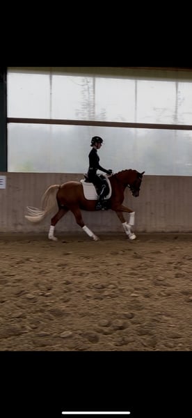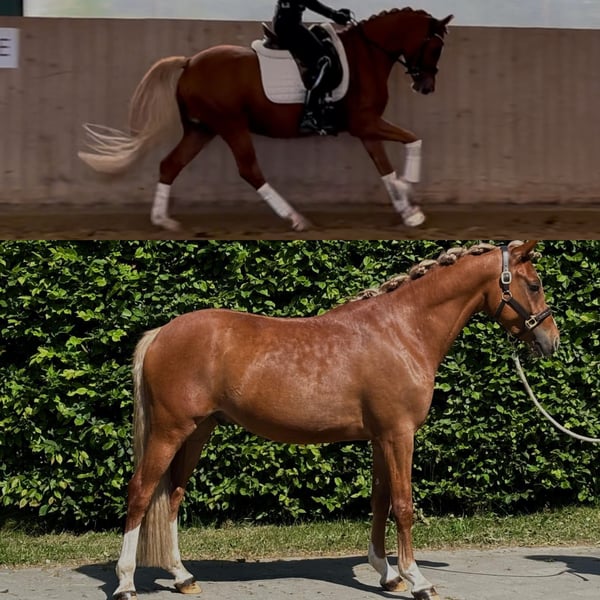 For sale is a stunning three-year-old pony gelding by FS New Chance out of Der Feine Lord AT, with a height of 1.47 m (approximately 14.1 hh). Visually, he is a real eye-catcher – four white socks, an expressive, handsome head, and a very nice conformation. He has excellent basic gaits and can comfortably carry larger riders. Under saddle, he is very rideable, sensitive, and always gentle. He maintains a pleasant tempo and a fine connection, making him suitable for children to ride with ease. In handling, he is a truly reliable pony – friendly, uncomplicated, and child-loving. The little riders can lead him, groom him, and tack him up independently. He has already experienced the atmosphere of a competition once and handled it confidently. He possesses everything one could wish for future sport, family, or leisure riding. X-rays are available.