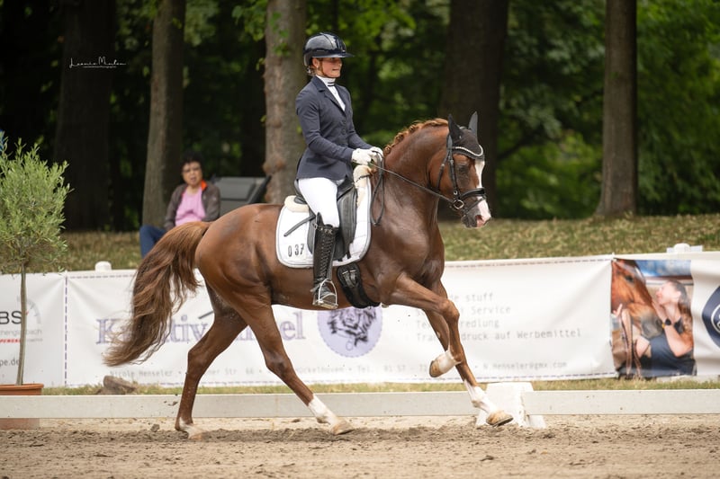 ⭐️Null Null Sieben⭐️ Im Auftrag verkaufe ich diesen tollen 3 jährigen gekörten Ponyhengst, abstammend vom Topvererber FS Numero Uno. Mit seinen 3 Jahren zeigt 007 sich bereits sehr souverän, sei es im täglichen Umgang/ Training als auch bei seinen ersten Turnierauftritten. Ein Pony, welches charakterlich unschlagbar ist! Er eignet sich für den ambitionierten Sportreiter, aber auch als absolutes Kinderpony! Er bringt 3 gute GGA mit sich, wobei hier der Galopp sicherlich hervorsticht mit Raumgriff und deutlicher bergauftendenz! Ein Pony, welches bereit ist, seinen neuen Besitzern täglich ein Lächeln ins Gesicht zu zaubern ✨ Alter: 3 Jahre Geschlecht: gekörter Hengst Abstammung: FS Numero Uno × Valido Ausbildungsstand: sicher angeritten, Reitpferdeprüfungen absolviert Stockmaß: 149 cm (gemessen mit Eisen) TÜV: Ein aktueller Tüv obB liegt bereits vor