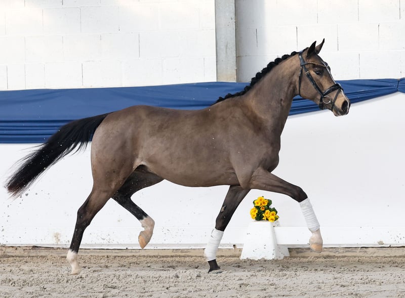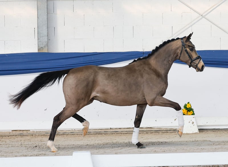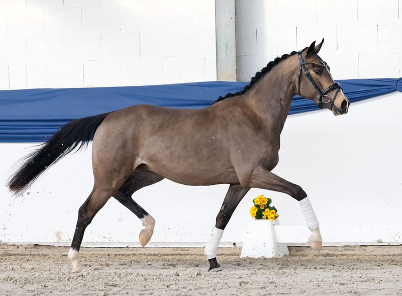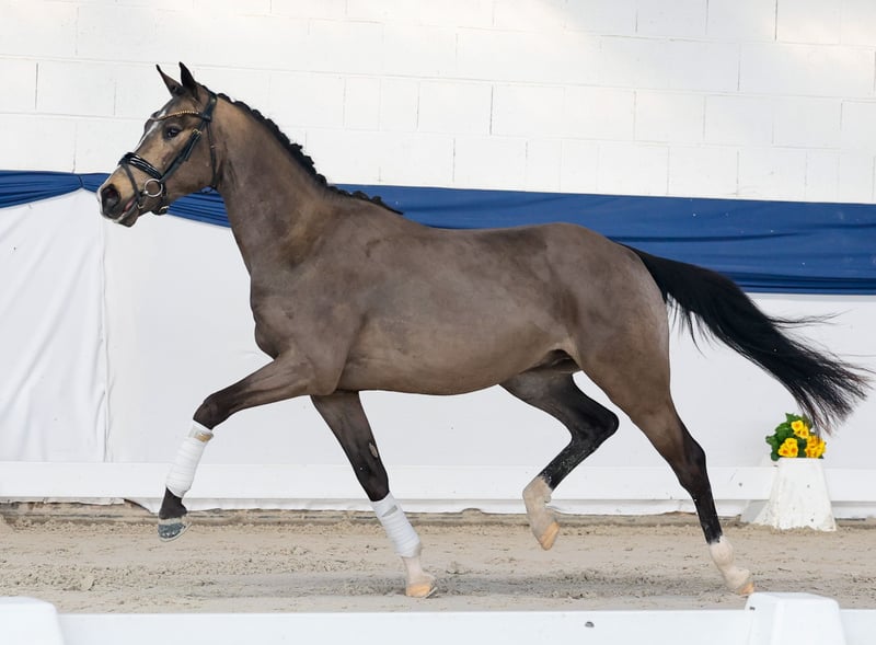 In unserer Kollektion stehen streng selektierte Youngster f�r alle Anspr�che: Ausbildungs-, Zucht- und Kinderponys Hier gelangen Sie zur Gesamtkollektion: https://ponyforum.auction Der Siegerhengst und Bundeschampion Gold Garant stellte mit über 30 gekörten Söhnen einen beeindruckenden ersten Jahrgang, zu dem auch unser XL-Pony Glücksritter zählt. Ebenso ist der Muttervater Dornik B einer der wertvollen Vererber in der Ponyzucht, der selbst zahlreiche EURO-Medaillen sammeln konnte und viermal das Bundeschampionat gewann. Der dunkle Buckskin Glücksritter hat nicht nur einen großen Bewegungsablauf, sondern auch große Linien! Er ist ein modern aufgemachtes und sportlich modelliertes Pony, dass sich schwungvoll und leichtfüßig in Szene setzt. Glücksritter kommt direkt aus der Aufzuchtgruppe und wurde noch nicht öffentlich vorgestellt. Eine Top Offerte für die Ausbildung unter dem Dressursattel!