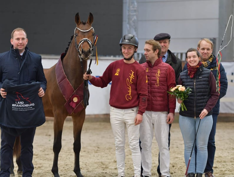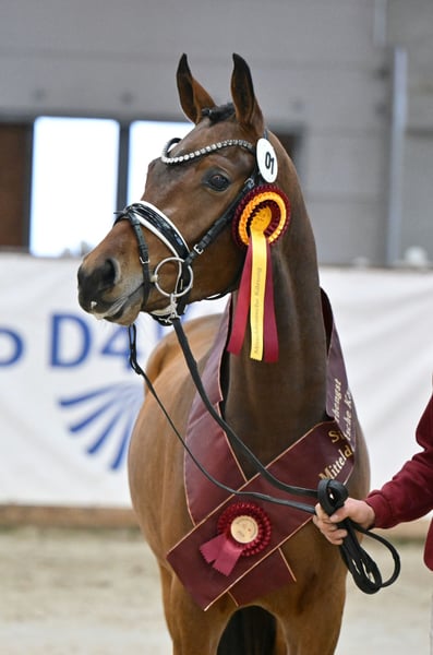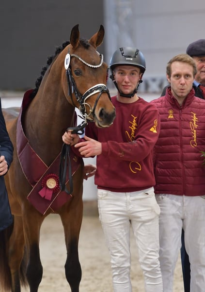 Directement du élevage, ce jeune hongre impressionnant et doté d’un bon galop provient de Tackmanns Cantuccini (S dressage) et d’une jument FS Golden Highlight. La sœur complète de la mère est Tackmanns Baiser, qui a été championne fédérale à l'époque. En pleine santé et bien élevé, il a toutes les portes ouvertes : il peut être présenté en stud-book ou continuer son dressage jusqu’aux épreuves de haut niveau, ou encore devenir un compagnon de loisir exceptionnel. Sa mère a déjà produit plusieurs juments primées d’État, dont la jument gagnante régionale Melting Moment. Saisissez cette pépite brute dès maintenant !