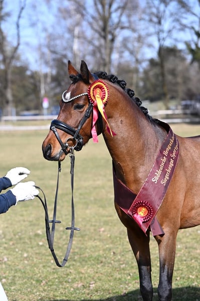 Zum Verkauf steht unser vielversprechender, fast 4-jähriger Deutscher Reitponyhengst Zamperl. Zamperl überzeugt nicht nur durch seine Qualität, sondern vor allem durch seinen außergewöhnlichen Charakter: Er ist stets klar im Kopf, absolut brav im Umgang und sehr menschenbezogen – ein echtes Herzenspony, das jeden Tag Freude macht. Er wurde bereits 3-jährig schonend angeritten und konnte zu diesem Zeitpunkt sicher in Schritt, Trab und Galopp frei geritten werden. Nach einer Pause bis zum Herbst wurde er gezielt auf seine Körung vorbereitet. Zamperl wurde Siegerhengst seiner Körung und begeisterte auf ganzer Linie. Besonders hervorzuheben: • Hervorragendes Freispringen • Sehr gute Grundgangarten • Ein überragender, raumgreifender Schritt • Ein groß angelegter, bergauf gesprungener Galopp Er kann auf Wunsch vor Ort gelegt werden und wäre als Wallach ein absolut zuverlässiges und talentiertes Kinder- bzw. Jugendpony mit großer Zukunft. Alternativ kann Zamperl auch gerne noch diese Saison im Deckeinsatz bei uns bleiben. Ein Pony mit Qualität, Charakter und Perspektive – sowohl für Zucht als auch Sport. Bei ernsthaftem Interesse freuen wir uns über Ihre Nachricht!