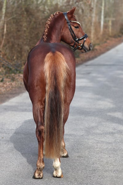 Zum Verkauf steht der sehr brave gekörte vierjährige Reitpony Hengst Springs Never Hide. Er stammt ab von Neverland WE aus einer Casino Royale K Mutter. Er wurde aktuell mit 1.41m eingemessen und somit ein Reitpony in kleinerem Maß. Er deckt allerdings sehr gut ab und kann auch von kleineren Erwachsenen gut geritten werden. Der kleine Muck zeigt sich vielseitig veranlagt. Er ist mit drei sehr guten Grundgangarten ausgestattet und zeigt sich beim Springen mit viel Übersicht und einer guten Technik. Im Februar 2025 erhielt er das Prädikat gekört. Er läuft bei uns derzeit Barhuf und ist sowohl Schmiede- als auch Verladefromm. Er wurde regelmäßig geimpft und entwurmt und war bei uns bisher nie krank. Der kleine Muck wurde letztes Jahr kurz angeritten und hat dann noch einmal den Sommer auf der Weide genossen. Seit Anfang diesen Jahres ist er jetzt wieder in Arbeit und lässt sich bereits sehr brav in der Halle und auf dem Platz auch mit anderen Pferden zusammen (auch Stuten) reiten. Dabei ist er zu jeder Zeit außergewöhnlich brav und möchte alles richtig machen. Er macht auch bereits kleine Sprünge in Folge unter dem Sattel und war auch schon kleine Stücke ausreiten. Ihn zeichnen hohe Rittigkeitswerte und seine unglaubliche Unerschrockenheit aus. In der Arbeit zeigt er sich stets motiviert, brav und sehr lernwillig. Hier wächst ein vielversprechendes Nachwuchskinderpony mit Potential in allen Sparten heran. Das Pony befindet sich auf dem richtigen Weg, muss aber noch weiter korrekt ausgebildet werden und ist deshalb nichts für reine Anfänger. Er wird allerdings bereits jetzt von einem 10jährigen Mädchen mitgeritten und macht das super brav mit. Somit kann ich ihn mir auch sehr gut für ein Mutter-Kind Gespann vorstellen. Ein gut reitendes Kind mit Unterstützung eines Trainers und regelmäßigem Beritt ist ebenfalls denkbar. Im Umgang ist er brav und sehr verschmust und genießt jede Aufmerksamkeit, die er bekommen kann. Er zeigt keinerlei Hengstunarten und lässt sich zu jederzeit gut Händeln. Er geht auch aktuell noch täglich mit einem Kumpel gemeinsam aufs Paddock und zeigt sich dabei sehr verträglich. Mit ein wenig Zeit, Geduld und Ausbildung wächst hier ein richtiges Traumkinderpony heran. Er wird im Auftrag der Züchterin verkauft und kann gerne jederzeit Probegeritten werden. Videos existieren und können bei Bedarf gerne versendet werden. Bei Fragen bitte per Nachricht oder unter 017630317998 melden.