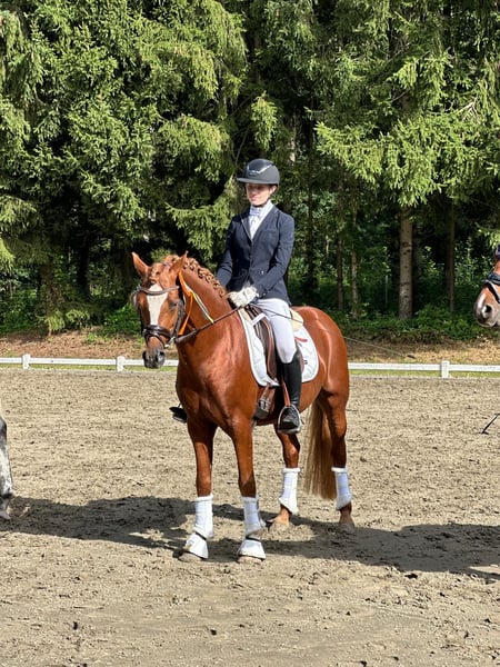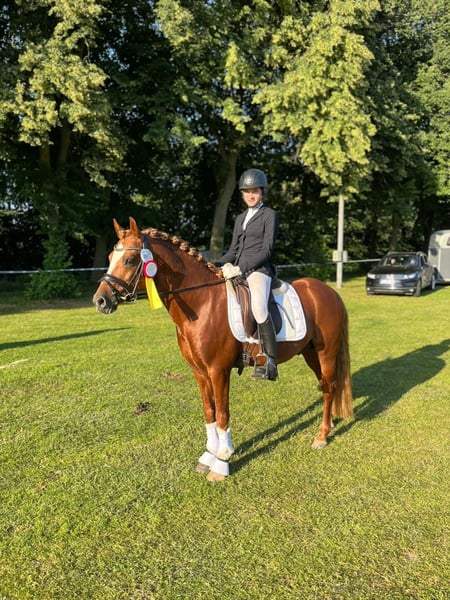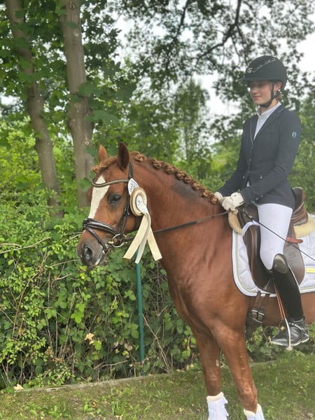 🌟 Südpfalz Diamant – a Hearthorse with Charisma, Talent, and Reliability! 🌟 Breed: German Riding Pony Gender: Stallion (licensed) Year of Birth: 2018 Height: Color: Chestnut Location: 24819 Todenbüttel ⸻ Südpfalz Diamant is a riding pony stallion that truly lives up to his name – a genuine diamond! He captivates with his stunning appearance, friendly personality, and impressive willingness to perform. ✨ Character & Training Since the age of 4, “Diamant” has been lovingly and consistently ridden and promoted by a junior rider. He consistently proves to be reliable, well-trained, and motivated – a partner you can always count on. Whether at competitions or during training at home: he always wants to please and works with a wonderful temperament. Whether in dressage, jumping, or hacking out in the fields, he is always easy and well-behaved in handling. He lives nearby my mares and foals and is always cooperative and well-mannered. ✨ Performance & Quality In 2022, he completed his 30-day stallion performance test in Neustadt/Dosse with an excellent overall score of 8.18 (4th place out of 26). His top scores speak for themselves: • Interior: 8.83 • Trot: 8.75 • Rideability: 8.50 He impresses with his strong character, relaxation, and absolute riding quality. In sport, Südpfalz Diamant has been victorious and placed multiple times up to L-level dressage, continually demonstrating his talent and composure. ✨ Pedigree & Future Prospects Sired by Diamond Touch – Der Harlekin B – Diddi Keeps Cool NRW, he combines proven performance genetics with modern riding pony elegance. Whether for dressage, high-level leisure riding, or as a valuable addition to a breeding program – this stallion is an exceptional horse with a bright future! ⸻ ❤️ Südpfalz Diamant – charming, strong character, and eager to perform. A pony that wins hearts and impresses across the board. 📹 Videos, more information, and competition records available upon request.