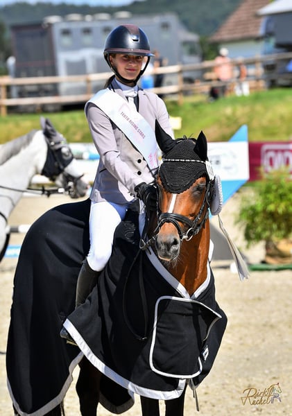 Mylord Manolito NRW impresses with the outstanding bloodlines of Machno Carwyn, Oosteinds Ricky and Night-Star III and thus brings concentrated jumping ability for riding pony breeding. His enormous talent at the jump, combined with type and correctness, makes breeders' hearts beat faster. The stallion follows in the footsteps of his sire Mylord Carwyn. Mylord Carwyn, a direct descendant of the exceptional sire and European Championship participant Machno Carwyn, was a jumping pony in a class of his own. With his overview and caution at the jump, he impressed riders, judges and spectators alike and was able to celebrate numerous successes up to elementary class pony jumping competitions. Mylord Manolito's dam, Red Sun, can also look back on impressive successes. She was successful in the highest pony jumping class (M**) and took part in the German Youth Championships under Lara Weber. Her lifetime winnings amount to over 2,500 euros. One of her full sisters, Risa, is successful in elementary (L) level dressage and advanced (A**) level show jumping. Her granddam Night Beauty also shines in breeding: among others, she produced the internationally successful driving pony Lake, who impresses with 28 victories in advanced (S) level FAP. The dam's sire Oosteinds Ricky, three-time Bundessieger stallion (1997, 2000 and 2005), is an exceptional sire with offspring that are highly successful up to advanced (S) level dressage and medium (M) level show jumping. His offspring have achieved lifetime earnings of over 100,000 euros. His grandsire Nightstar III was also an exceptional talent: Bundeschampion of 5-year-old show jumping ponies and Westphalian Champion under Tim Rieskamp-Goedeking with serial victories in medium (M) level show jumping competitions. With these excellent genetics, it was hardly surprising that Mylord Manolito NRW was one of the top show jumping stallions at his licensing. As a 3-year-old, he was already convincing in the Westphalian free jumping championships after winning several qualifications. His show career began just as promisingly: in his first eight starts, he placed in the top 4 eight times, including four qualifications for the Bundeschampionat for 5-year-old jumping ponies with scores above 8. He also managed to place in the qualifications for 6-year-old elementary class jumping ponies as a 5-year-old. He continued this series of successes as a 6-year-old, qualifying for the Bundeschampionat several times under two different riders. As the newly crowned Westphalian Champion of the 6-year-old jumping ponies, he won the first round there and was represented in the final. At the age of 7, Mylord Manolito NRW was nominated by the Westphalian Studbook for the Federal Stallion Show in Berlin, where he represented the Westphalian colors in show jumping. Of the 89 stallions nominated by the German breeding associations, he took 4th place and returned home as the most successful Westphalian pony. In addition to his athletic talent, Mylord Manolito NRW scores with a balanced character and high rideability. In the 2023 season, he was able to prove his ability among children by leading twelve-year-old Elisa Watermaier to numerous victories and placings up to elementary (L) level pony jumping competitions. The pair qualified for several top-class final competitions, including the Westphalian Youngster Championships, the Hagedorn Ponytrophy Tour and the Legdener Zukunftspreis. They were also successful at prestigious tournaments such as the CSI Paderborn, the Bexter Open and the Delbrück Masters. In breeding, Mylord Manolito NRW already left his mark in his premium year, as he was the champion jumping stallion at both the Westphalian and Rhineland pony licensing. In addition, the 3-year-old Top Messenger from Mylord Manolito's premium crop won the Westphalian free jumping championships. In 2024, Mylord Manolito NRW once again proved that he is one of the absolute elite of German show jumping ponies. Under his rider Jona Jolie Schwamborn, the stallion thrilled the public with an impressive series of successes. In May 2024, he shone internationally with a 2nd place in the Grand Prix of Samorin (CSIOP) and a 4th place in the Individual Nations Cup, also in Samorin. These strong performances only marked the start of an exceptional year. In June, Mylord Manolito NRW secured victory in the prestigious 2-phase show jumping competition at the Future Champions in Hagen a.T. (CSIOP), one of the most important tournaments for talented young riders in equestrian sport. In the same month, he was also crowned Rhenish Pony Champion at the Rhenish Championships. In July, Mylord Manolito NRW continued his winning streak in San Giovanni, Italy. There he triumphed in the Grand Prix (CSIP) and in the 2-phase jumping competition and also secured 2nd place in the warm-up jumping competition. He proved his exceptional ability and consistency once again in August when he won the Grand Prix at the Rising Stars in Hagen a.T. (Haunhorst riding facility) and took second place in the 2-phase jumping competition. In September, Mylord Manolito NRW crowned himself with a bronze medal at the German Youth Championships in Riesenbeck. In October, he set another highlight with a 7th place at the "Pony World Cup" show jumping competition (FEI Pony Trophy Tour) in Herning, Denmark, over an impressive 1.35 m. As the best German pair, he once again showed that he can also compete at the highest international level. Shortly afterwards, he won the Grand Prix in Munich-Riem, underlining his outstanding form. Mylord Manolito NRW also continued his success story in November. He triumphed in the Grand Prix of Legden over 1.30 m and became Vice-Champion of the Aachen Youngstars (Salutfestival), where he won the second competition. He also demonstrated his incredible talent against large horses in an S* jumping competition. The crowning glory of this extraordinary year came in December, when the Westphalian Studbook awarded h
