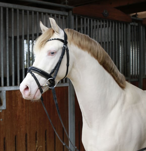 Cashcode is a son of Caramel WE, a champion stallion, state champion, and federal champion. His dam, Carla, is a daughter of FS Champion de Luxe x FS Don’t Worry, from a highly decorated mare line that has produced numerous internationally successful and awarded sport ponies. Cashcode was licensed at the Ponyforum licensing and is recognized nationwide. In 2021, he won riding horse classes against large horses, receiving a 9.0 for rideability. He placed in the final of the Westphalia Championship and participated in the Federal Championship. At the performance test in Münster-Handorf, he received the highest rideability score among all participants, becoming a performance stallion. In 2022, he achieved success in dressage tests at level A and qualified for the HKM Federal Championship. At the 2023 Federal Stallion Show of German Riding Ponies in Berlin, he was awarded a 1d prize and was the best Westphalian pony stallion in his age class in the dressage competition. Cashcode won two final qualifications for the HKM Federal Championship of 6-year-old dressage ponies in 2023. He also placed in dressage tests at level L against large horses. His first FEI placement underscored his success, with Kiana Joy Hoyer, who has been riding the charming Perlino since 2022, making these achievements possible. In 2024, the pair achieved numerous successes at level L. Cashcode has been covering for four years and will be available through Celle State Stud with fresh semen in 2025. His foals are not only beautiful but also very strong movers. His first offspring are now under saddle, and our expectations have been fully met—the rideability of his progeny is exemplary with excellent interior values—truly dream ponies. Cashcode consistently passes on correct conformation, great color variety, and splendid type expression. He is also approved for warmblood breeding and is often used for warmblood mares, producing consistently successful foals. Cashcode was in high demand in 2024, and his foals were sought after. Cashcode possesses the double cream gene but has not yet produced offspring with blue eyes. The colors range from palomino, buckskin, and dun with beautiful markings in a splendid presentation. His quality of movement and jumping ability make him a dual-talented sire with that certain extra. Semen orders can be placed through Celle State Stud - Breeding Station Verden or Ms. Susann Heise.