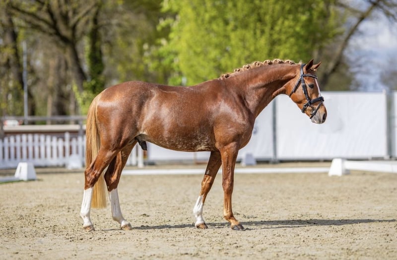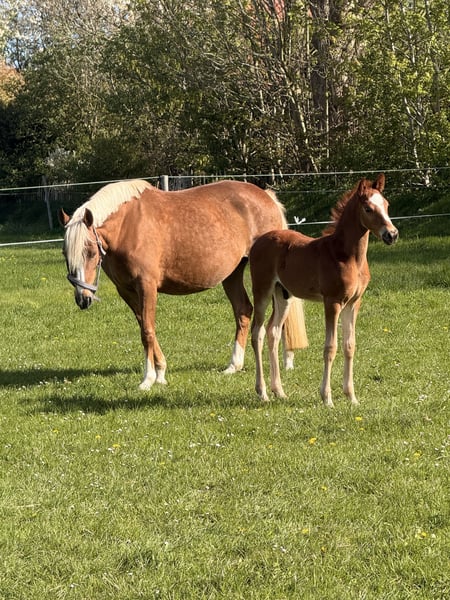 Verkaufe deutsches Reitpony-Hengstfohlen– Dieser charmante deutsche Reitpony-Hengst wurde im März 26 geboren und beeindruckt durch sein freundliches Wesen sowie seine beeindruckende Erscheinung. Mit einem geschätzten Endmass von 146 cm ist er die perfekte Größe für ambitionierte Nachwuchsreiter und Ponyreiter, die Wert auf Qualität und Charakter legen. Der Fuchs-Farbe verleiht ihm eine besonders ansprechende Optik, die durch seine elegante Erscheinung unterstrichen wird. Er ist zutraulich, zeigt viel Talent für die Dressur und springen. Seine Bewegungen sind taktklar, schwungvoll und ausdrucksstark – ideale Voraussetzungen für den Dressursport auf Turnieren oder für den gehobenen Freizeitreitsport. Der Hengst ist gesund, gut sozialisiert und zeigt sich im Umgang stets freundlich und aufgeschlossen. Seine rassetypischen Eigenschaften machen ihn zu einem vielversprechenden Partner für den Dressurviereck, aber auch für die ambitionierte Freizeitreiterfamilie. Sein Vollbruder ist der in Weser-Ems gekörte Hengst Neuseriem Doc Lüsche (Bilder 2-4). Bei Interesse freuen wir uns auf Ihre Kontaktaufnahme, um weitere Details zu besprechen.