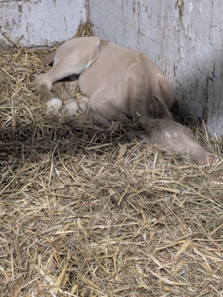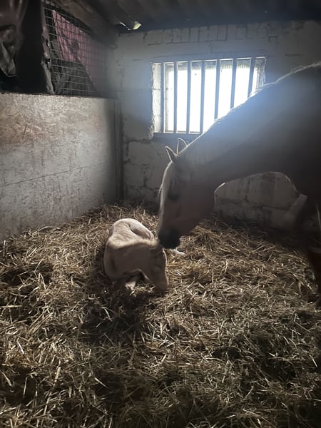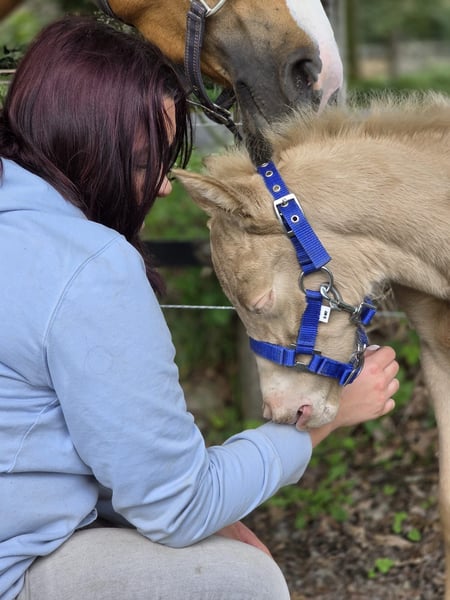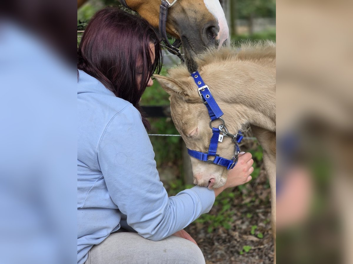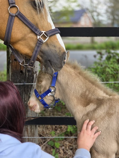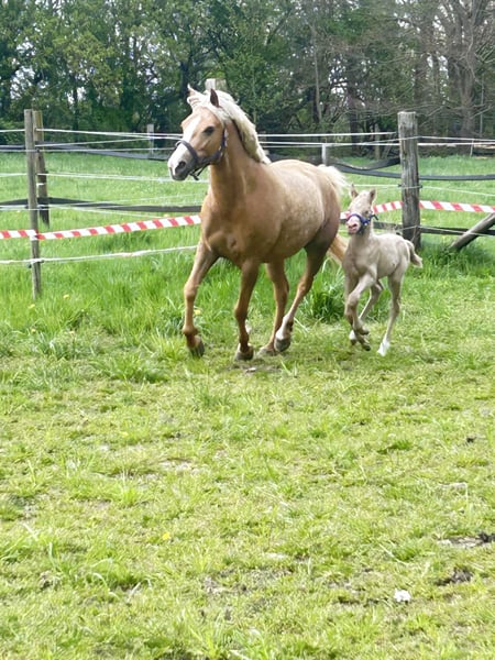 Minaro’s Blue Eyes – exklusives deutsches Reitpony Hengstfohlen in seltener Perlino-Farbe Am 12.04. um 19:45 Uhr hat dieses ganz besondere Hengstfohlen das Licht der Welt erblickt: Minaro’s Blue Eyes – ein echter Blickfang mit seiner außergewöhnlichen Perlino-Farbe und den strahlend blauen Augen. Abstammung: Vater: Centauros Midas Elite Hengst Mutter: Deleila Schon jetzt zeigt sich der kleine Mann neugierig, aufmerksam und mit einem freundlichen Wesen ausgestattet. Er wächst artgerecht auf, kennt den täglichen Umgang und überzeugt durch seine korrekte Statur sowie seine elegante Erscheinung – beste Voraussetzungen für eine erfolgreiche Zukunft im Sport oder als treuer Freizeitpartner. Bis zu seinem Auszug wird Minaro’s Blue Eyes selbstverständlich altersgerecht aufgezogen und lernt das Fohlen-ABC kennen. Dazu gehören unter anderem: - Halfterführigkeit - Hufe geben - Umgang mit dem Menschen - erste Gewöhnung an Alltagssituationen Wir wünschen uns für ihn ein liebevolles Zuhause mit Pferdeverstand, in dem er weiterhin gefördert und geschätzt wird. Bei ernsthaftem Interesse freuen wir uns über eine Nachricht.