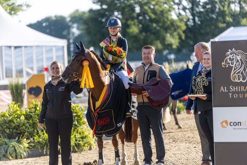 Del Drago zählt zu den herausragenden Nachwuchshengsten im Ponyspringsport und setzte bereits fünfjährig ein sportliches Ausrufezeichen auf höchstem Niveau. Als amtierender Bundeschampion der fünfjährigen deutschen Springponys rückte er nachhaltig in den Fokus von Züchtern und Fachpublikum und bestätigte eindrucksvoll sein außergewöhnliches Potenzial für den großen Sport. Im aktuellen Bundeschampionatsjahr gewann Del Drago das Finale der fünfjährigen Springponys, eine Springponyprüfung der Klasse L, mit einer Wertnote von 8,7. Bereits zuvor hatte er die Finalqualifikation für sich entschieden und bestätigte seine Topform im Finale erneut. Unter seiner Reiterin und Besitzerin Antonia Ercken überzeugte er mit ausgeprägter Übersicht am Sprung, sehr guter Körpermechanik, hoher Beweglichkeit sowie schnellen Reflexen im Vorderbein – Eigenschaften, die von den Richtern ausdrücklich hervorgehoben wurden und seine aktuelle sportliche Reife unterstreichen. Auch außerhalb des Turniergeschehens wurde seine besondere Qualität anerkannt. Im Jahr 2025 wurde Del Drago von Equitaris zum Nachwuchspony des Jahres gewählt. Diese Auszeichnung unterstreicht seine gegenwärtige Bedeutung als aufstrebender Leistungsträger im Ponyspringsport. Bereits zuvor hatte Del Drago auf sich aufmerksam gemacht. Auf der Ponykörung in Schleswig-Holstein präsentierte er sich als überragender Springsieger und begeisterte mit einem außergewöhnlichen Freispringen. Für Vermögen, Vorsicht, Flexibilität und Schnellkraft wurde er jeweils mit der Höchstnote 10,0 bewertet. Diese Bewertung verdeutlicht eindrucksvoll seine außergewöhnliche Qualität am Sprung und sein hohes Potenzial bereits als junges Pony. Gezogen wurde Del Drago auf dem Lillyhof Wacken. Sein Vater Dialo, abstammend von Diarado und Levisto, war selbst international erfolgreich bis 1,50 m unter dem Sattel von Pheline Ahlmann. Mit einem Stockmaß von 1,64 m stellte er seine sportliche Leistungsfähigkeit im internationalen Springsport eindrucksvoll unter Beweis. In der Folge bestätigte Dialo seine Klasse auch unter Jolie Marie Kühner in der internationalen Children Tour mit Erfolgen beim Preis der Besten sowie mit Einzel-Bronze und Mannschafts-Gold bei den Europameisterschaften. Die Mutter Monique, eine Tochter des Elitehengstes The Braes My Mobility, zählt zu den prägenden Stuten ihrer Linie. Sie brachte mehrere gekörte Hengste und sportlich hoch erfolgreiche Ponys hervor. Zu ihren bekanntesten Nachkommen zählen die Hengste Del Piero I und Del Piero II, die unter verschiedenen Reitern unter anderem den Titel des Deutschen Meisters erringen konnten sowie Erfolge beim Bundesnachwuchschampionat und in Nationenpreisprüfungen erzielten. Ihr Sohn Melvin ist ebenfalls gekört und bis zur Klasse M erfolgreich, ebenso wie ihre Tochter Melina, die den Titel der Vize-Bundeschampionesse gewann. Weitere sportlich erfolgreiche Nachkommen dieser Linie sind unter anderem Ghost, Maserati I und II, Mississippi sowie Mochita. Auch die Großmutter Melissa ist züchterisch hoch abgesichert. Sie stellte selbst einen gekörten Sohn und ist zudem die Großmutter von Amacho, der unter Antonia Ercken im Ponyspringsport zu den erfolgreichsten seiner Generation zählte. Zu seinen Erfolgen gehören unter anderem der Titel des Deutschen Meisters, Siege beim Preis der Besten sowie der mehrfache Gewinn der Goldmedaille bei den westfälischen Meisterschaften. Neben seiner sportlichen Qualität überzeugt Del Drago durch eine hohe Rittigkeit und Gelassenheit im täglichen Umgang. Er zeigt sich konzentriert, lernwillig und ausgeglichen, verbunden mit einem einwandfreien Charakter. Diese Eigenschaften lassen bereits früh erkennen, dass er nicht nur über herausragende sportliche Anlagen verfügt, sondern auch beste Voraussetzungen für den Einsatz unter Nachwuchsreitern mitbringt. Mit seinem Titel als amtierender Bundeschampion, der Auszeichnung als Nachwuchspony des Jahres, seiner außergewöhnlichen Freispringqualität und einer genetisch wie sportlich hochkarätig abgesicherten Abstammung präsentiert sich Del Drago als überzeugende Nachwuchshoffnung und als hochinteressanter Hengst für die leistungsorientierte Springponyzucht.