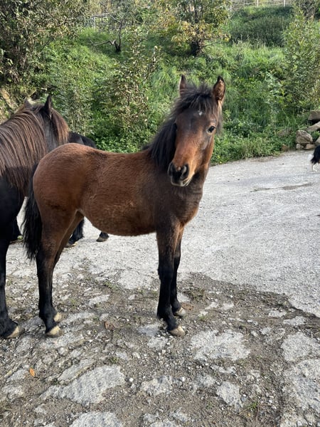 Potro geboren in april. Vader gemengd Pottoka-Arabisch. Moeder pure Pottoka.