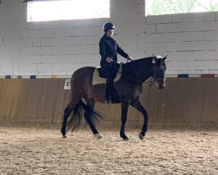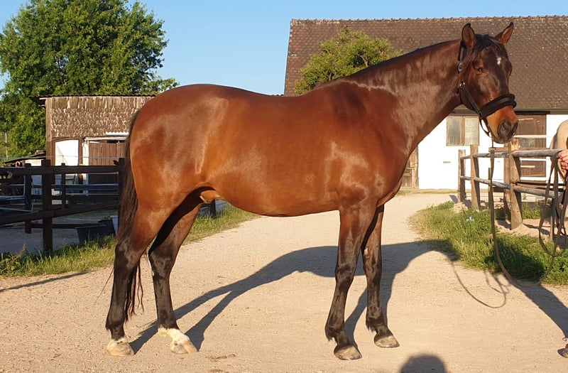 Aduanero Irja, genannt Nero sucht seinen Herzensmenschen: - P.R.E, geboren 25.9.2016, gesund, ekzemfrei - 5-jährig kastriert, 167 cm groß, Braunfalbe - barhuf, ranghoch, leichtfuttrig und sehr sensibel Ich habe mir Nero vor 2 Jahren als Kumpel für meinen 10-jährigen Murgesen gekauft. Beide Pferde stehen in einem Selbstversorgerstall in sehr großen Paddocks nebeneinander. Sie bewachen gegenseitig ihren Schlaf, gehen gemeinsam auf die Koppel, spazieren etc. wurden aber leider keine Freunde. Da sie charakterlich sehr unterschiedlich sind, matcht es einfach nicht zwischen Ihnen. Das liegt mit an der Eifersucht des Murgesen. Beide Pferde möchten einen Menschen für sich und "The one and only" sein. Nero sucht einen ruhigen aber souveränen Menschen mit niedriger Energie, der viel mit ihm unternimmt und Anschluss an eine Wallach- / Hengstherde. Aus dieser Haltung (Offenstall) kam er auch. Nero wird seit 2 Jahren von mir akademisch gearbeitet, ist äußert talentiert, lernt unheimlich schnell, liebt Bodenarbeit in jeglicher Form, ist immer aufmerksam, willig und mutig. Mit Begeisterung macht er Agility, Extrem Trail und ist für jeden Spaß zu haben. Über ein Jahr bin ich ihn geritten, in Begleitung auch im Gelände - hier ist er sehr souverän -, bis ich in der Halle einmal heruntergefallen bin, weil er sich erschreckt hat. Seitdem hat Nero davon ein kleines Trauma. Derzeit wird er nicht geritten. Von Mitte November 2025 bis Januar 2026 kam 2-3x pro Woche eine bekannte akademische Trainerin zu uns und hat mit Nero gearbeitet. Sie hat in der kurzen Zeit unfassbar viel erreicht. Leider kann sie aufgrund des vollen Terminkalenders nicht weiter zu uns kommen, da die Fahrt zu weit ist. Ich wünsche mir die passende Person für Nero, die nur für ihn da ist, Erfahrung in akademischer Arbeit hat, Haltung im Offenstall mit Pferdekumpeln bieten kann, Bodenarbeit liebt und sich, wenn Reiten gewünscht ist, mit seinem Trauma auseinander setzt. Es fehlt nicht mehr viel. Nero ist im Winter eingedeckt und bringt seine "Garderobe" und Einiges an Zubehör mit. Es handelt sich nicht um einen Notverkauf!!! Aufgrund kürzlich aufgetretener, gesundheitlicher Probleme, die bleiben werden, kann ich auf Dauer 2 Pferden nicht mehr gerecht weden, zumal sich beide wünschen, das einzige Herzenspferd zu sein. Der Preis ist Nebensache, wenn sich der passende Mensch findet. Ein ausführliches Kennenlernen ist ausdrücklich erwünscht. Daher wäre eine Person aus dem größeren Umkreis von Nürnberg von Vorteil. Ich freue mich über aussagekräftige Nachrichten. Nach einem Telefonat kann ich Videos verschicken. Es gibt einige :-). Zögert nicht mich zu kontaktieren.