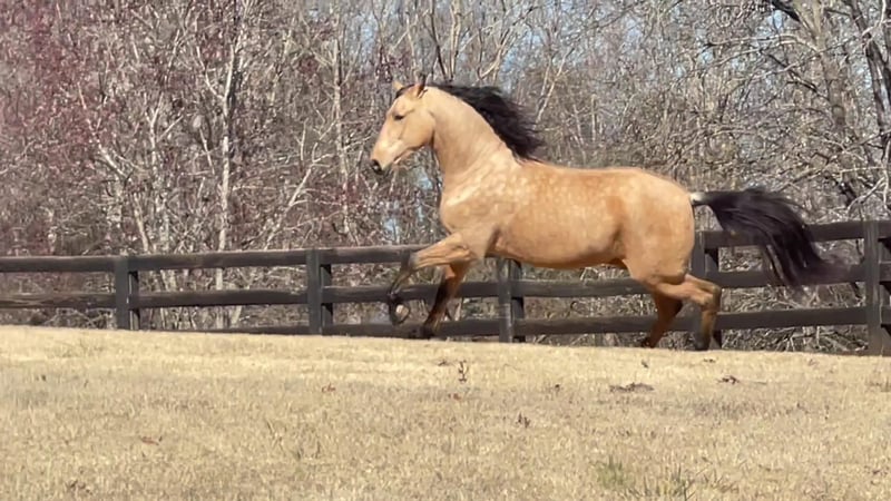 Si vous recherchez le facteur « wow », Rayito est votre cheval. Né en 2016, il a été importé aux États-Unis en tant que yearling. Il a été commencé en selle par un entraîneur portugais. Il possède trois allures pures, un trot très confortable pour s’asseoir et un joli galop. Il a déjà participé à quelques compétitions, notamment en deuxième niveau l’été dernier. Actuellement, il travaille les mouvements du troisième niveau sous la guidance compétente d’un entraîneur classique du Portugal. Il a un tempérament charmant et joueur, et il se développe magnifiquement sous la selle. Il mesure plus de 1,65 m, mais pas tout à fait 1,66 m, avec un corps large et puissant qui occupe bien la jambe — tout le monde pense qu’il fait 1,68 m. Rayito est joueur, enchanteur et prêt à créer un lien avec sa personne pour toujours. Il sait qu’il est spécial. Il est sain, confiant, pas peureux, et expérimenté en randonnée. Il convient le mieux à un cavalier confiant qui apprécie un cheval puissant, réactif aux aides légères. Il est enregistré auprès du USDF/USEF, révisé par l’ANCCE, et fera un partenaire exceptionnel en compétition ou en loisir. Situé à Aiken, en Caroline du Sud. Des vidéos supplémentaires sont disponibles — n’hésitez pas à nous contacter pour plus de détails.