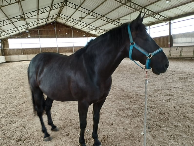 Spanish Crossbreed 10 years old Handled and well-mannered, affectionate in nature Unfortunately has a thickened suspensory ligament on the left front leg, but can be ridden and shows potential No restrictions Due to a long break, training should be resumed gradually; he is sound and free of lameness Trial riding possible under certain conditions Very willing to learn Lunged and basic ridden training Friendly in handling Barefoot Equipment included Purely a leisure horse Price negotiable If interested or for further information, I am happy to assist. I look forward to hearing from you!