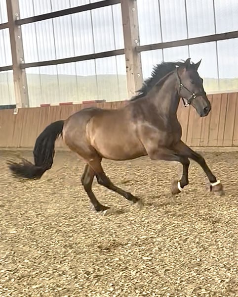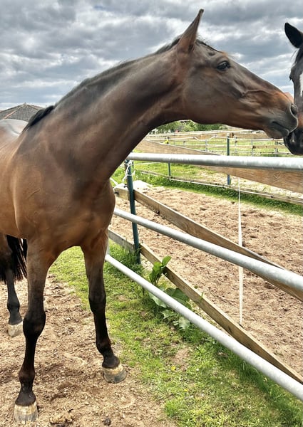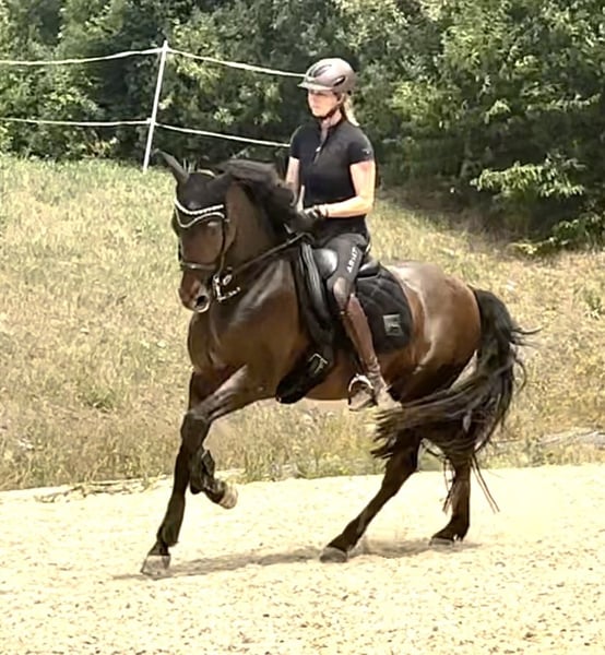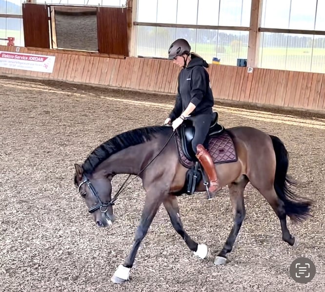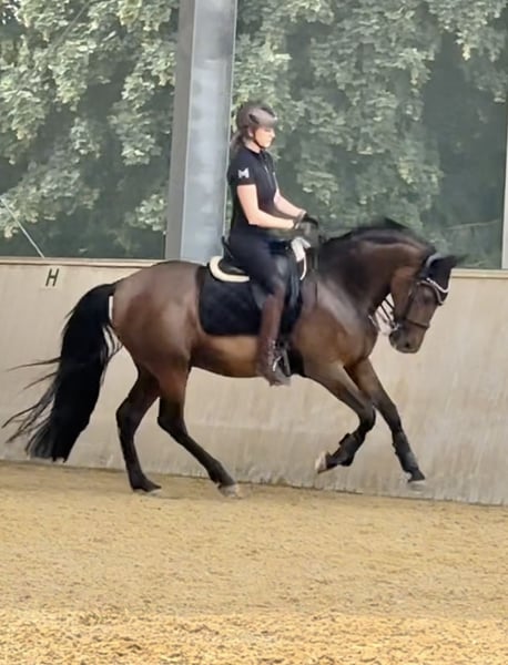 Laro ist seit Ende Februar zum Aufbau bei mir und ist jetzt bereit in ein liebevolles neues zu Hause umzuziehen. Er wurde Aufgrund einer Erkrankung der Besitzerin längere Zeit nicht mehr gearbeitet und musste muskulär wieder neu aufgebaut werden. Da ich selbst Pferdephysiotherapeutin bin, wurde er in dieser Zeit regelmäßig behandelt. Seine Zähne wurden dieses Jahr gemacht, er ist Tetanus und Influenza geimpft und aktuell noch 4fach beschlagen. Röntgenbilder der Beine vorhanden. Laro wurde in Spanien bis zur Piaffe und Passage ausgebildet. In einigen Lektionen zeigt er allerdings noch Unsicherheit und ist Aufgrund der fehlenden Kraft und seiner Unsicherheit gestresst. Er will immer alles richtig machen und ist dadurch manchmal überfordert. Er braucht einen erfahrenen Reiter, der ihn Zeit und Sicherheit gibt. Wenn er erstmal etwas ohne Druck verstanden hat, gibt er absolut 100%. Er war dieses Jahr schon einmal an den Rindern, was er sehr mutig gemeistert hat. Ein Rinderschein kann diesen Monat bei Interesse noch gemacht werden. Vor kurzem habe ich ihn auch unter Turnierbedingungen in der Working Equitation Kl L getestet und er hat dieses brav gemeistert, braucht dort aber definitiv noch mehr Erfahrung, da ich mit ihm noch nicht oft an den Hindernissen trainiert habe und er das erste Mal überhaupt auf einem Turnier war. Natürlich kann man mit ihm auch alleine ins Gelände gehen. Auch wenn er nie Kopflos ist und Max mal einen Satz zur Seite macht, ist er allerdings keine Schlaftablette. Er steht aktuell in einer großen Paddockbox mit Auslauf, kann aber auf jeden Fall in einer Herde eingegliedert werden. Weitere Videos können bei ernsthaften Interesse übermittelt werden.
