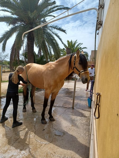 For sale is an attractive 11-year-old PRE gelding standing at 16.1 hh. Talavante has a solid foundation in dressage and some experience in jumping. He is regularly ridden by a professional rider and additionally by a 14-year-old amateur rider. He responds delicately to aids and is sensitive in handling, so he is not suitable for beginners but ideal for riders with some experience. A recent veterinary certificate confirms his good health (no lameness, no known previous illnesses). He is accustomed to loading and has shown to be uncomplicated in this regard. He has not been extensively tested in the terrain. Location: Mallorca, Spain An interesting horse for ambitious leisure riders or for further training.