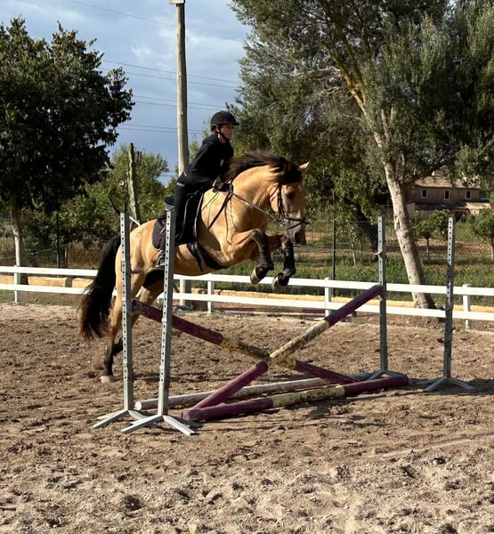 Zum Verkauf steht ein attraktiver 11-jähriger PRE Wallach mit einem Stockmaß von 165 cm. Talavante verfügt über eine solide Grundausbildung in der Dressur sowie erste Erfahrungen im Springen. Er wird regelmäßig von einem professionellen Reiter gearbeitet und zusätzlich von einer 14-jährigen Reiterin geritten. Er zeigt sich fein an den Hilfen und sensibel im Umgang, weshalb er kein Anfängerpferd ist, sondern für Reiter mit etwas Erfahrung geeignet ist. Ein aktuelles tierärztliches Zertifikat bestätigt seinen guten Gesundheitszustand (keine Lahmheit, keine bekannten Vorerkrankungen). Er kennt das Verladen und zeigte sich dabei unkompliziert. Gelände wurde bislang nicht intensiv getestet. Standort: Mallorca (Spanien) Ein interessantes Pferd für ambitionierte Freizeitreiter oder zur weiteren Ausbildung.