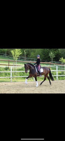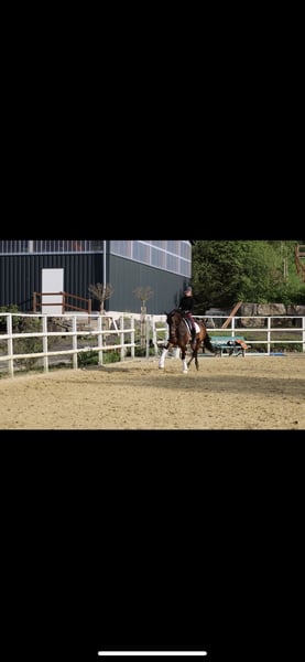 Moderner 1,68m großer reinrassiger PRE- Wallach (volle ANCCE- Papiere) sucht sein for-ever- Zuhause! Geb. 2015. „Rüsselchen“ ist super verschmust und menschenbezogen wenn er erstmal Vertrauen gefasst hat. Er vermittelt ein tolles Reitgefühl, immer im Takt mit super GGA! Derzeitiger Ausbildungsstand: L- Dressur, sein Halbbruder „Ganador“ hat auf der equitana Open air 2018 in Neuss überlegen die S- Kür im Barockpferdecup gewonnen. Er kennt auch working equitation. Kein Anfängerpferd, ein typisches 1-Personen-Pferd, wird zur Zeit aber auch von 12j. Reitanfänger mitgeritten. Idealerweise Mutter/ Kind- Kombination mit sportlichen Ambitionen. Großer TÜV aus 2025 vorhanden. Kein Gewichtsträger. Wird nur in nachweislich beste Hände verkauft!