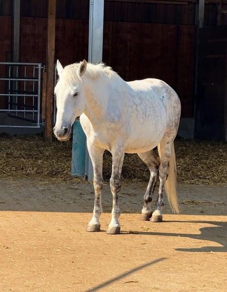Con il cuore pesante abbiamo deciso di affidare il nostro amato castrone Gigolo (nel passaporto Rómeo) a mani nuove e amorevoli. Gigolo è un castrone spagnolo di 12 anni, con un'altezza al garrese di 1,52 m. Per me è stato il mio primo cavallo personale – un vero cavallo di cuore, che mi ha insegnato tantissimo e mi ha regalato molti momenti indimenticabili. Per questo motivo, lo immagino perfetto come cavallo per adolescenti, per la famiglia o anche come affidabile compagno di passeggiate. Che si tratti di uscite tranquille, di saltare un tronco in campagna o di galoppare libero sui campi – Gigolo rimane sempre calmo, obbediente e resistente ai nervi. È un cavallo sincero, su cui si può sempre contare. Anche in libertà di salto, dimostra entusiasmo per il lavoro e salta fino a 1,20 m. Gigolo ha una diagnosi di asma equina, non cronica, quindi deve essere inalato regolarmente. Riesce a gestirlo bene. Porta con sé la sella Kieffer Vs e il suo inalatore equineb. Per ulteriori domande e video, contattare il 0172 8070464, solo tramite WhatsApp, nessuna chiamata. ❗ Nessun commerciante, nessuna attività scolastica. Desideriamo per Gigolo una casa amorevole, dove venga apprezzato come merita.